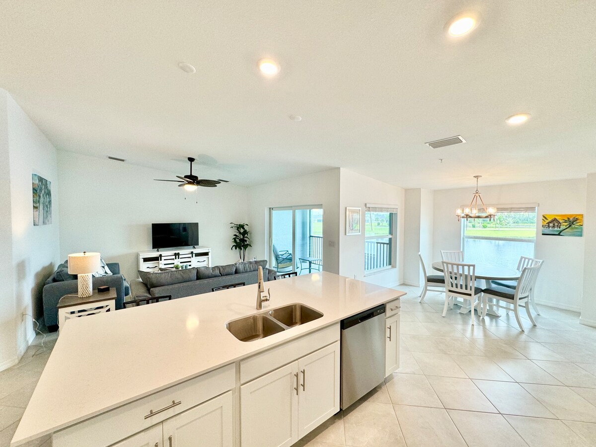 Pristine resort style condo in the brand new Heritage Landing Community in Punta Gorda. This space features 2 bedrooms and a private den with a king bed, a queen bed and a sofa bed. There are 2 screened in lanais with gorgeous views overlooking the lake. Community amenities include a large pool area with a hot tub and tiki bar, pickleball and tennis courts, fitness center, sauna, and more. Enjoy close proximity to downtown Punta Gorda and Fishermen's Village.