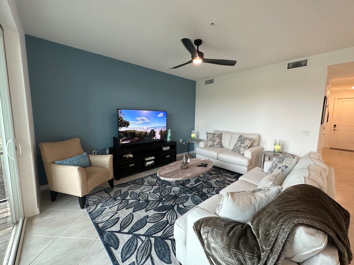Beautiful 2 br 2 bath condo directly on Burnt Store Marina. Golf, pool, grills, hot tub, fitness center, 3 restaurants and more in this amazing community. Have fun with the whole family at this stylish place.