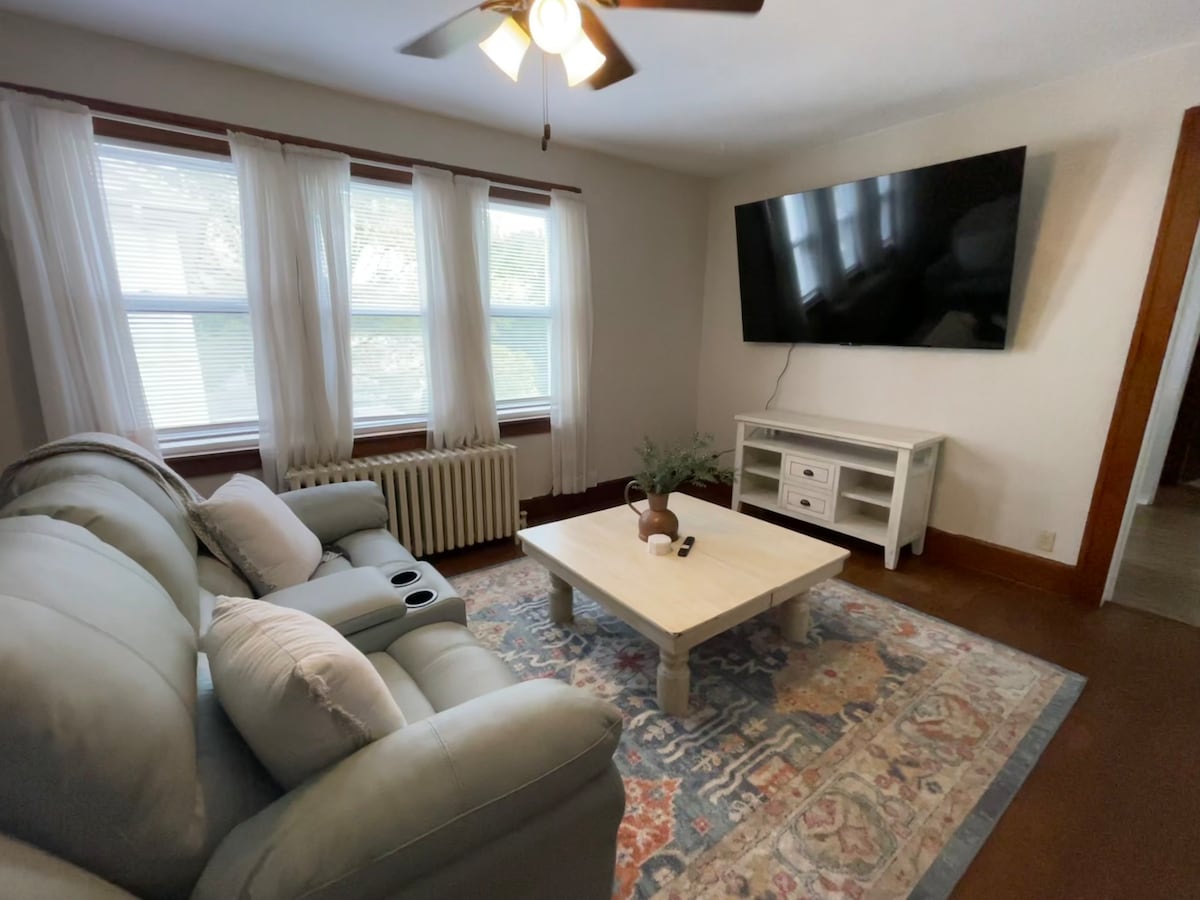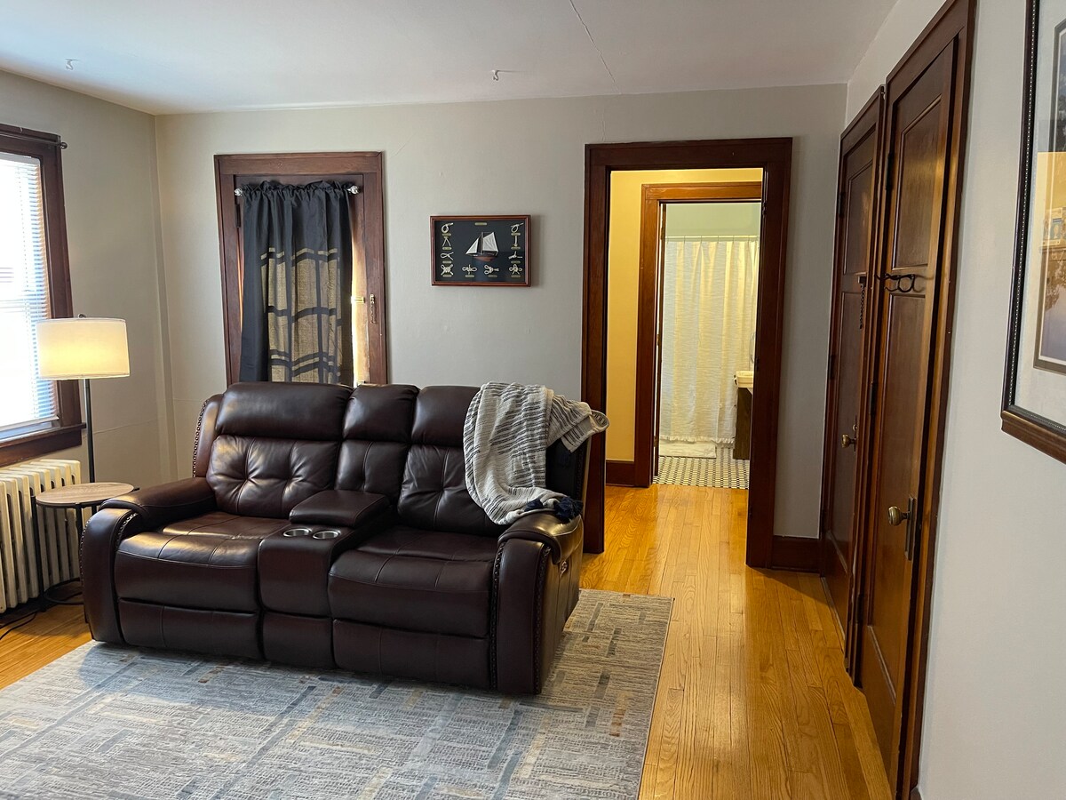 Kick back and relax in this charming flat, with original woodwork and other features. Close to Lake Michigan and not far from Downtown Racine where you will find local eateries, bars, and shops. You will find Large Smart TVs in both the living room and bedroom. Large closets for extra storage. If we missed anything to help you settle in, we are more than happy to help accommodate your needs!