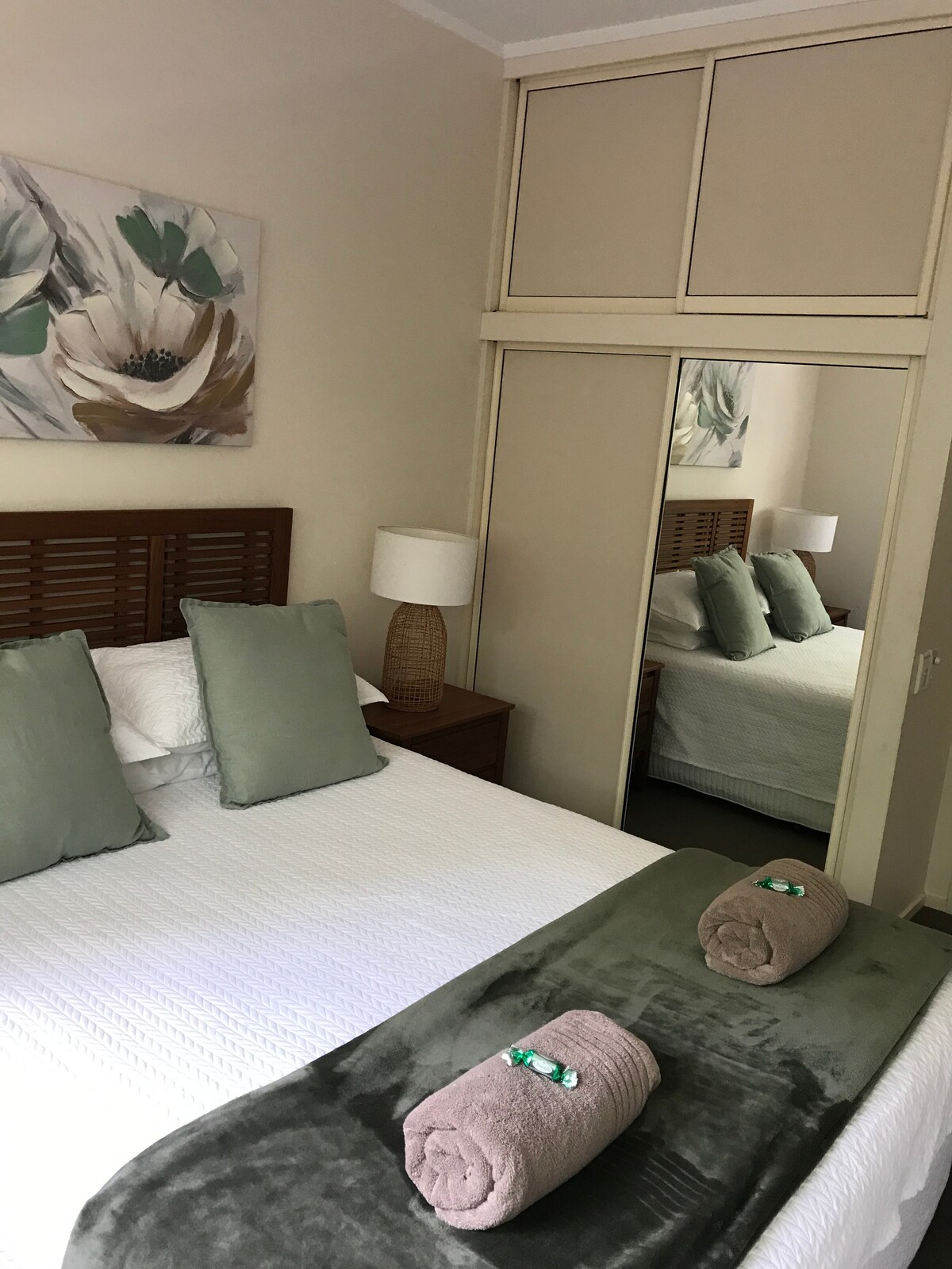 The unit is in the Rainbow Shores resort which has a hot tub, two pools and tennis court. The beach is a short stroll away through the bush track.