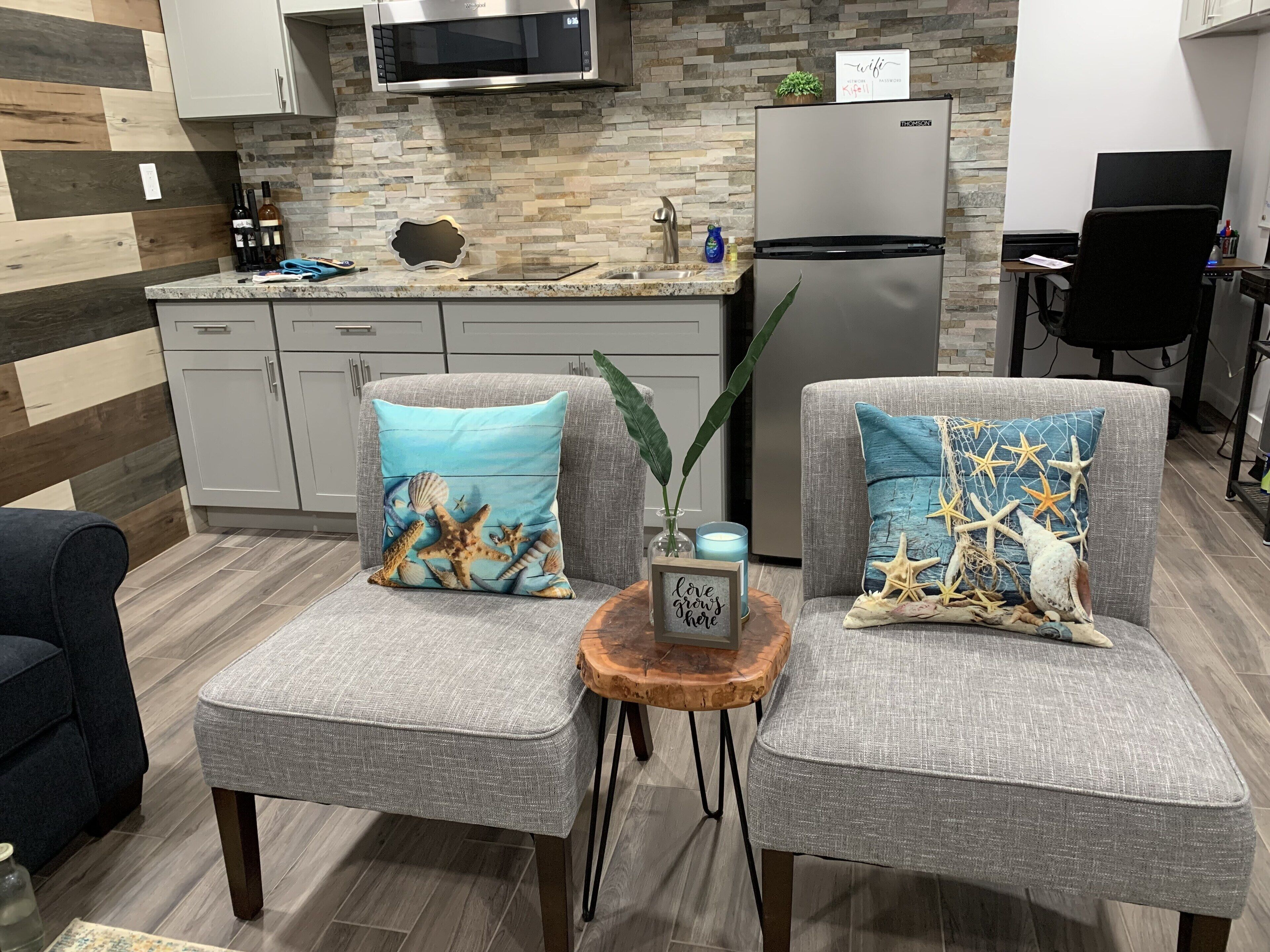 Your unit is fully furnished and equipped including Keurig Coffee Maker and Instant Pot. Also, vacuum cleaner, iron and ironing board are included along with basic cleaning and laundry supplies. Utilities include electricity, heat, gas, internet (400+ MBPS Wi-Fi), garbage/trash, sewer, and water. No pets. Enjoy a 55" Smart TV in the living room and a 43" Smart TV in each bedroom.