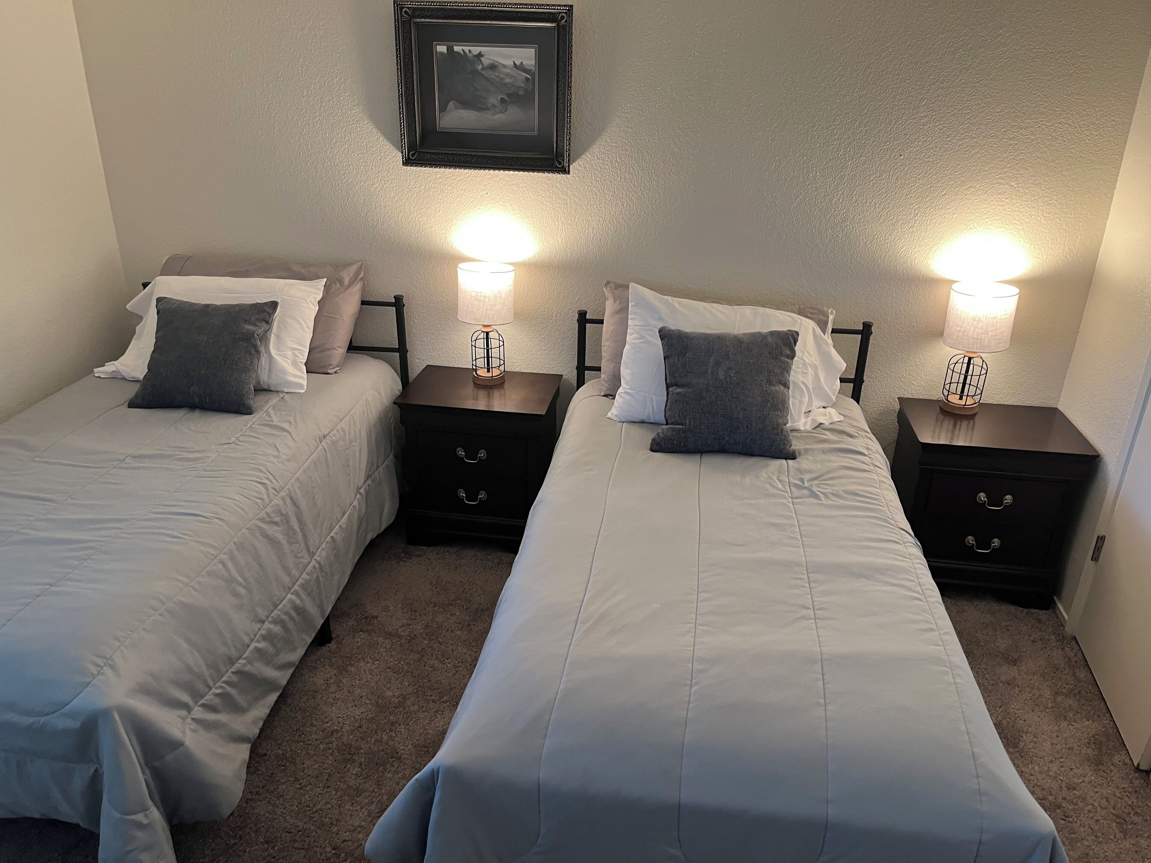 Perfect for your Family /Team/Crew. Primary bedroom has a Queen Size Bed. Second bedroom has two Twin Size Beds.
