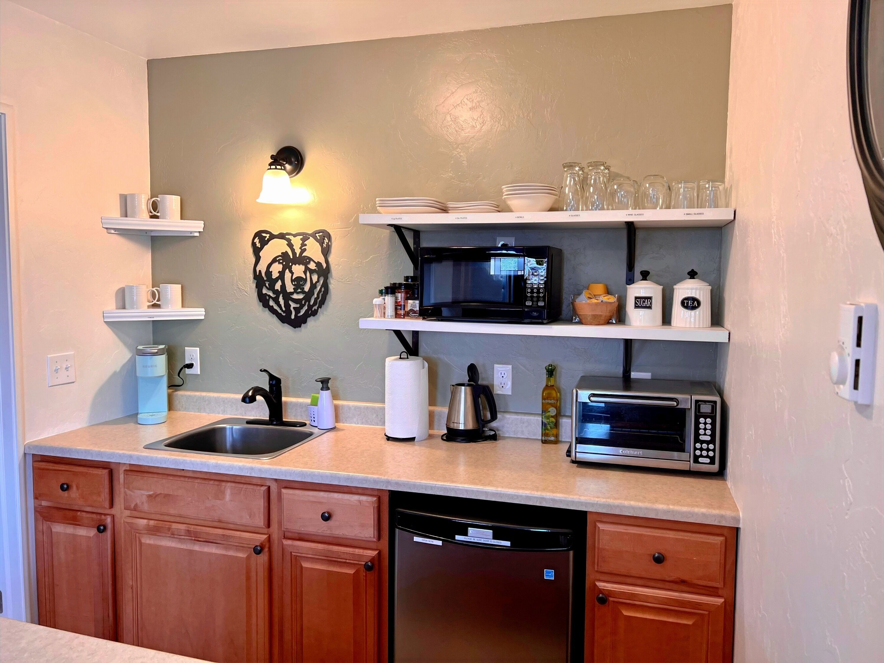 The Cornerstone @ Crossers Station is one of those three original buildings. It is perfect for 2 people who want to explore all the town of Red Lodge has to offer, and all within walking distance! The home is located right on the main street of Red Lodge and is just blocks away from amazing restaurants and quaint shops that make Red Lodge a “destination location!” The home has a fully stocked kitchen, one full-bath, and a living room with a gas fireplace. The queen-size murphy bed has a high-quality, comfortable mattress and works perfectly for hiding it away when you want to enjoy more space in the living room. There is also a fun outside patio area with a hot tub, firepit, and grill to enjoy! As a bonus, you can see the Beartooth Mountains from this historic home located on the corner of Red Lodge’s