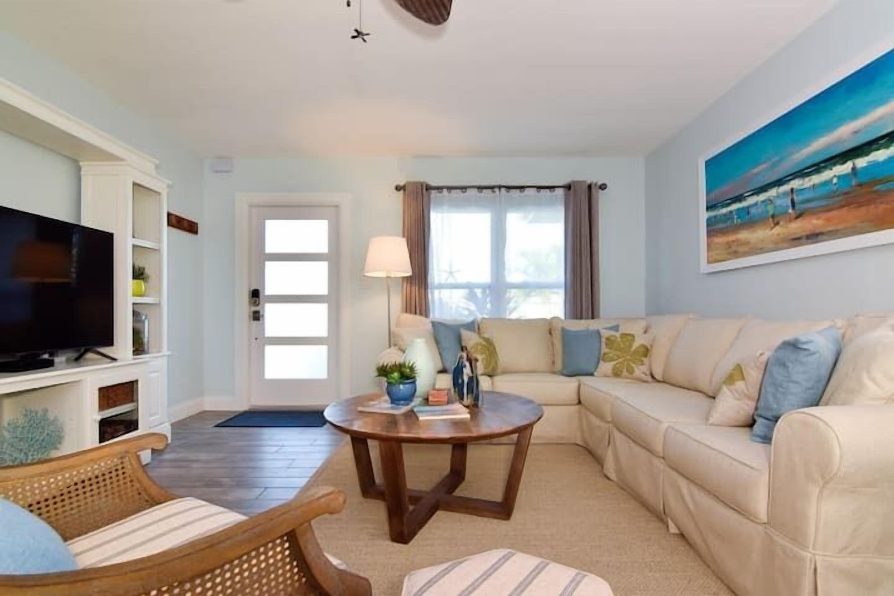 With the soft sound of the hot tub and the rising sun, your day starts out with the peaceful, relaxing feel that only the beach can bring. Just steps away from sand, this newly updated tropical 1bed/1bath guesthouse will give you the relaxing, serene escape you want. This guesthouse has all the functionality for your beach stays while your private hot tub gives you the relaxing recovery you are seeking.