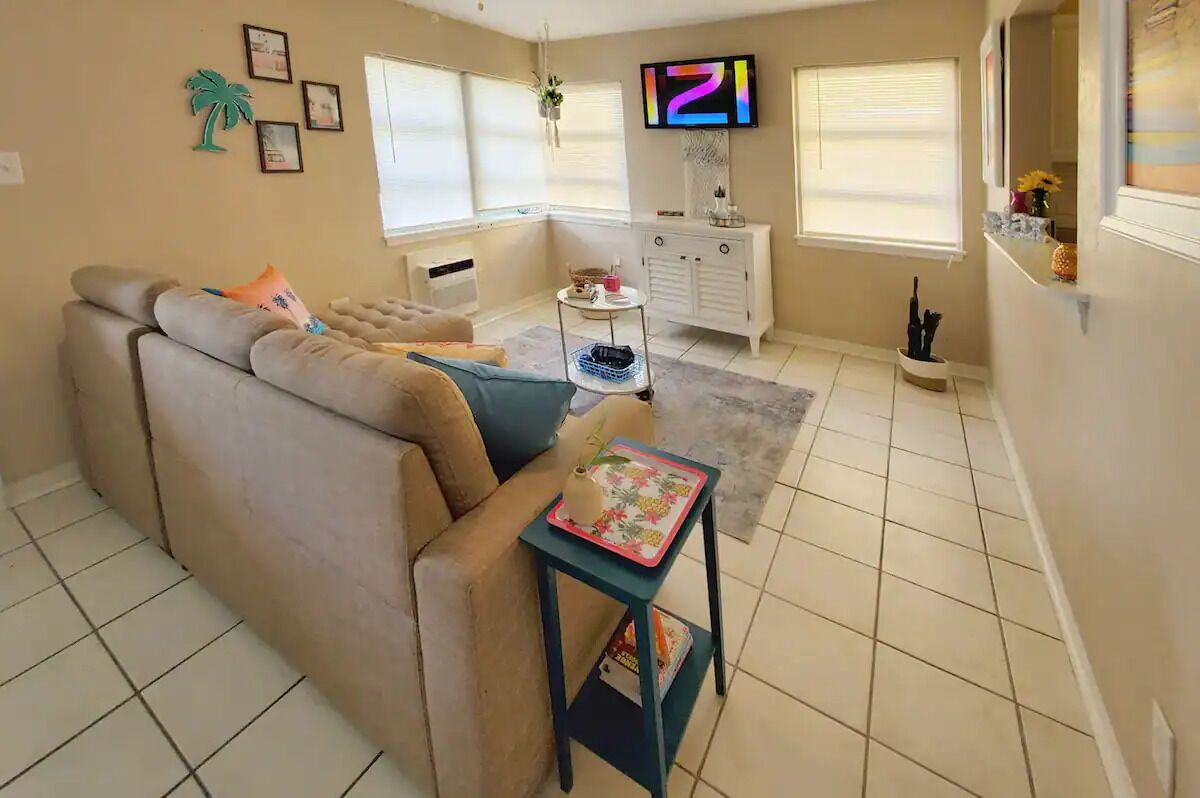 Welcome to our lemon-themed apartment just a 2-minute walk away from the stunning Madeira Beach! Bright, airy and tastefully decorated with accents of lemon yellow throughout, this space is sure to bring a smile to your face.