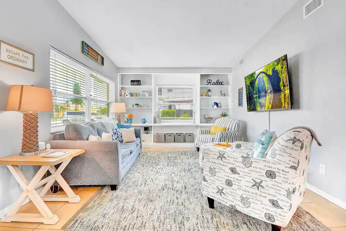 Escape to this charming Redington Beach getaway, just a 5-minute walk from the sandy shores. Ideal for families, this fully equipped home offers beach accessories, a fenced yard with a picnic table and BBQ, and on-site laundry. Enjoy the convenience of a fully stocked kitchen and unwind in a family-oriented community. With easy access to Madeira Beach, St. Pete Beach, and nearby attractions, this is the perfect spot for a Gulf Coast retreat. Experience coastal living at its finest. Houzlet publishes listings on Vrbo; which in turn, allows tenants to instantly rent seasonal rentals. Houzlet’s properties are managed by licensed real estate agents. Although the property is an instant rental, it’s possible there can be another pending application. If the home is not available, we can offer you another suitable option or you can cancel for free.