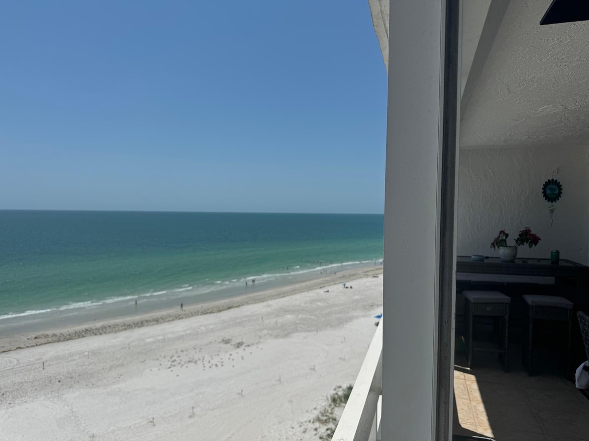 Luxury Direct Beachfront 3-bedroom Pet-Friendly Gated Condo in Redington Shores with Extra Large Balcony. Complete reno. All new appliances, furniture, decor, linens. Chef's kitchen with everything you could need including gadgets galore. Heated pool, 2 hot tubs, grilling area, secure gate from beach. Dog park on property (we allow 1 dog under 25 lbs).Private parking spot near secure lobby. Workout facility. Premier host with 5* property reviews avail upon request.