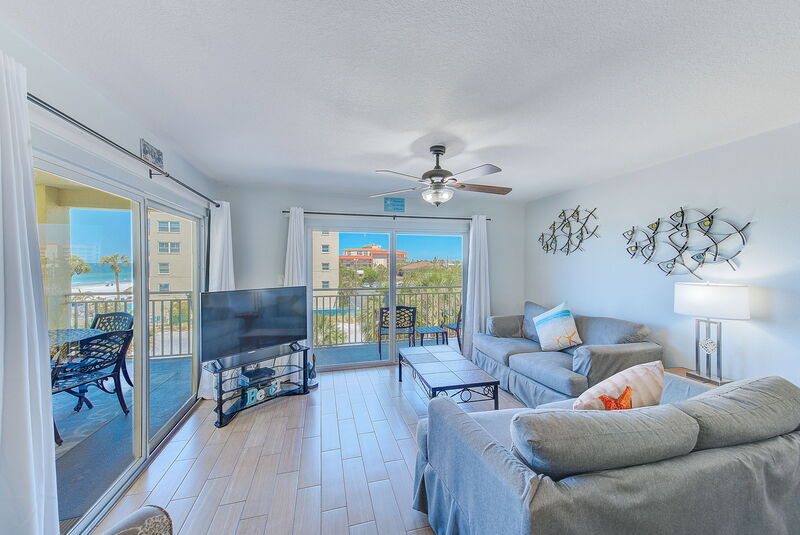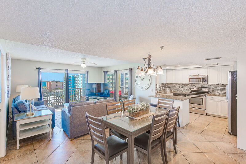 Our condo is a 3 bed 3 bath unit that has been completely updated with brand new appliances and quartz counter tops in the kitchen and all bathrooms. Brand new furnishings, bedding, and beach decor throughout. Each bedroom has its own full bathroom. The kitchen is fully equipped so you feel at home. Step out on to the large wrap around balcony from the front bedroom or the living room. You have a beautiful view of the beach and stunning sunsets.