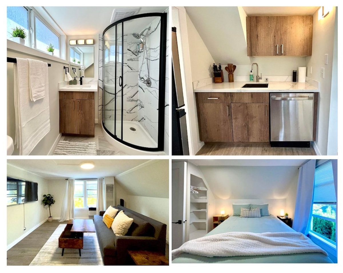 Experience the allure of this modern unit in Downtown Renton, recently renovated & nestled in a century-old structure. Ideal for visitors, professionals, and small families, your 2nd floor gem combines tranquility and modernity. Just steps away you have downtown's best- vibrant eateries, chic boutiques, inviting pubs and charming coffee shops. Immerse yourself in a unique blend of old-world charm and contemporary comfort with our Charming & Bright Gem, conveniently located with street parking.