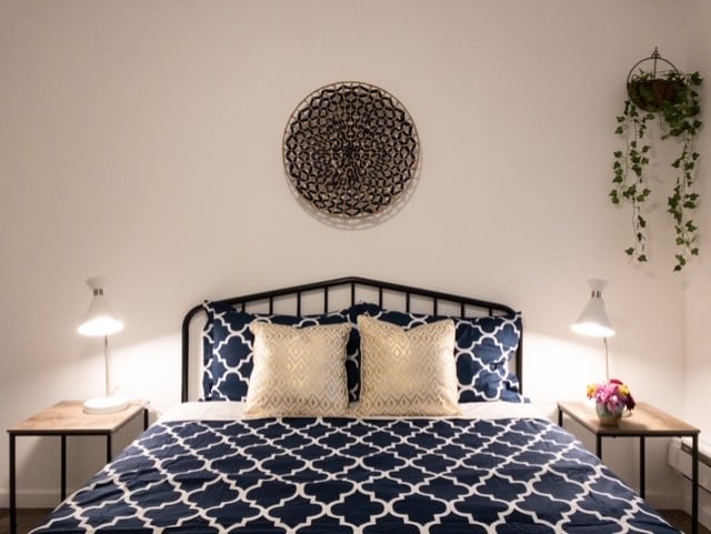 ✅ Nightstands with reading lamps, USB chargers in the bedroom