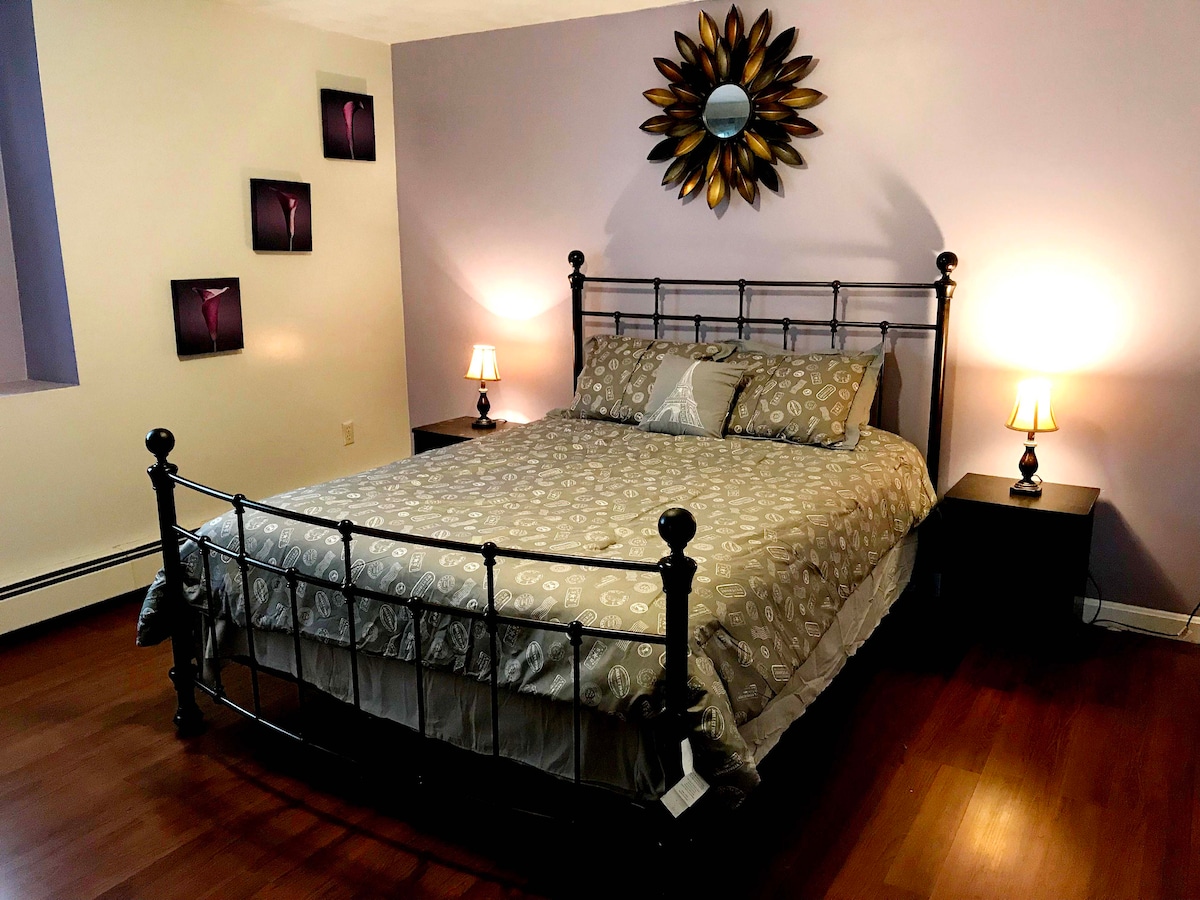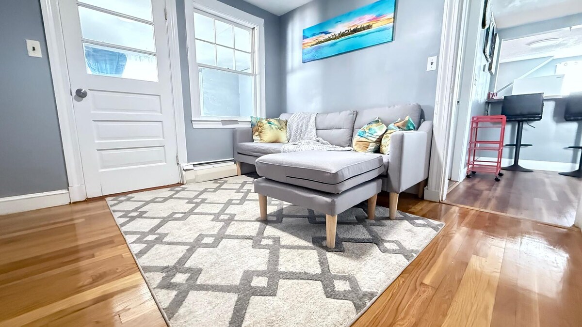 Located in the heart of West Revere. 1 bed 1 bath and Futon Sleeper. Includes 1 free parking on premises. Contactless door entry and access to everything needed for a relaxing stay. Entire kitchen, living room and a peaceful office space for those working remotely. Free wifi! Perfect for couple &/or couple with a child..