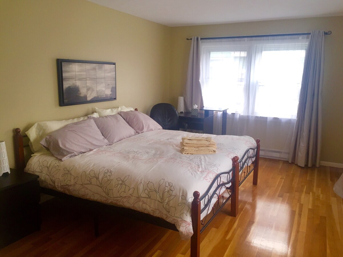 This is a 3-bedrooms house with a nice porch in a very nice and quiet neighborhood. Perfect for a family or a group of friends/co-workers. Main bedroom has a king size bed and a crib, second bedroom has a full size bed, third bedroom FullXL size daybed(this room has exit to private porch). There is also a sofa bed in the 3 seasons room that can definitely accommodate someone(when weather allows). This space doesn’t have heat so, gets cold in the winter time.