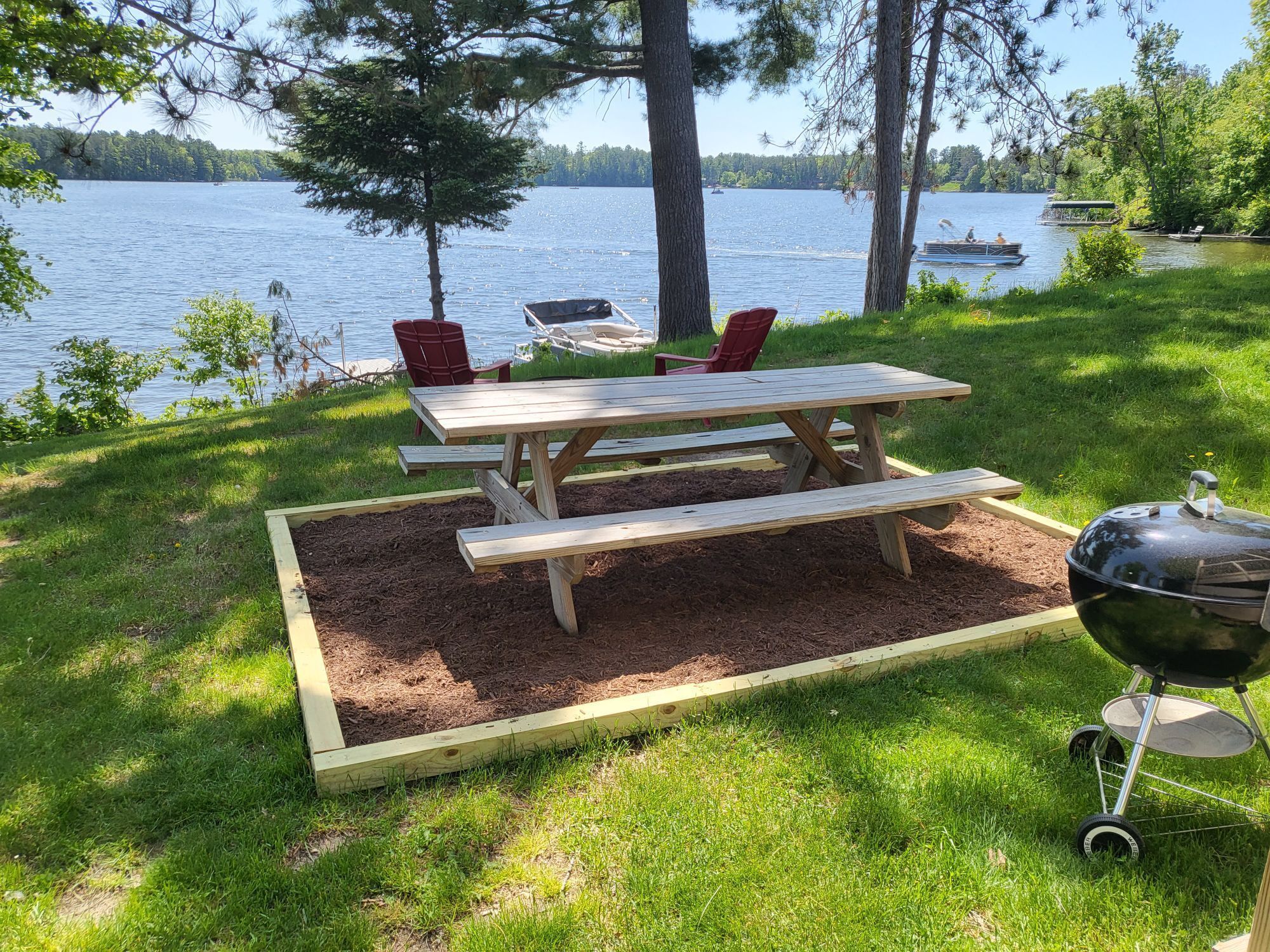 Enjoy your privacy in this modern, lower level walkout with a good sized lockable bedroom, family room area, full bathroom and fully equipped kitchen to prepare your own meals. Relax on the walk-out patio and cook out on the supplied gas grill or enjoy a camp fire at the nicely finished fire pit (fire wood provided). In just a few steps you're at the lake shore dock. The lake water is clean and clear. Catch some fish and cook your own fish dinner. During winter months, your snowmobile can take off here and in less than a mile join up with hundreds of miles of groomed trails. You can also try your luck ice fishing. Wild birds and other native wildlife, such as; ducks, loons, geese, deer, bear, blue and green heron, bald eagles and more are in the area. There is a distinct possibility of seeing many of these, right from the lake shore.