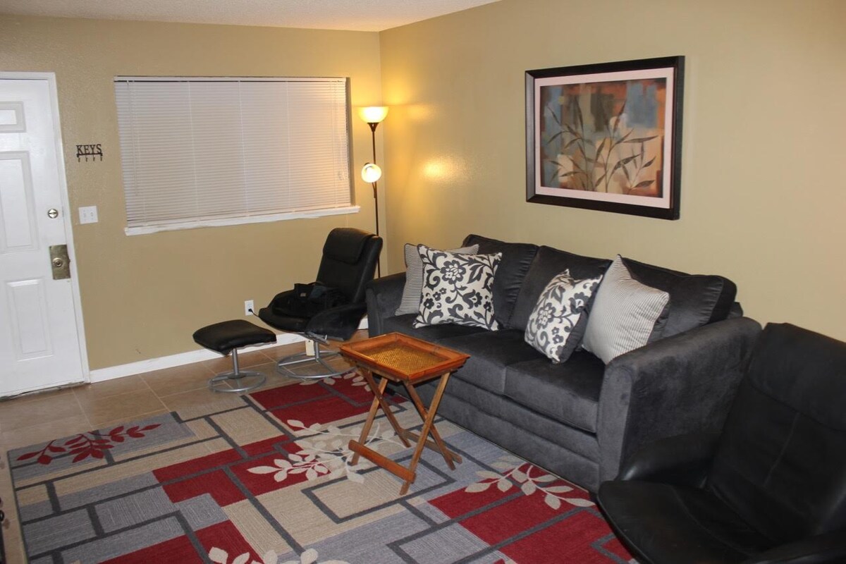 - "This is a very nice, small but SO comfortable apartment in a nice complex, centrally located and well maintained. I would stay again gladly!" - "Overall the place was clean, well put together, and quiet. Hadja was helpful when I had questions about the listing. We were glad to have a place off the main road, yet close enough to everything that we didn’t have to drive far to get where we needed to. Glad we were able to find this place!"