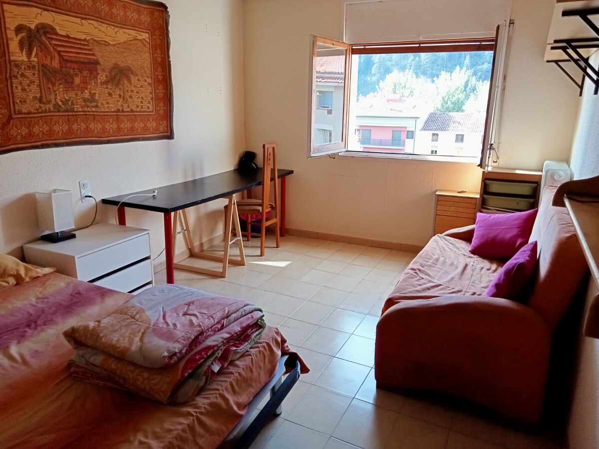 Room in historic Pyrenees village two minutes from the center, surrounded by mountains. In the flat there is a dog and two cats, to abstain guests who do not like animals or allergies.