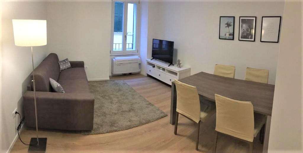 Sunny apartment, 4th and top floor in historical listed building in front on the famous antic well (il pozzo) and 200 meters from the lake. Situated in one of the most prestigious streets in historical centre.