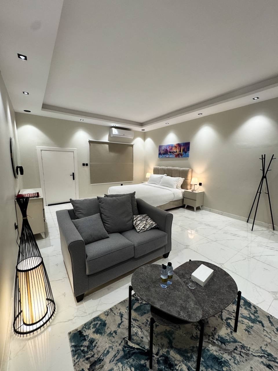 A high-end studio in the Arid neighborhood, north of Riyadh, with a strategic location near the airport, about 23 kilometers from King Khalid International Airport, 8 kilometers from Al Habib Hospital, and 15 minutes from the Boulevard.