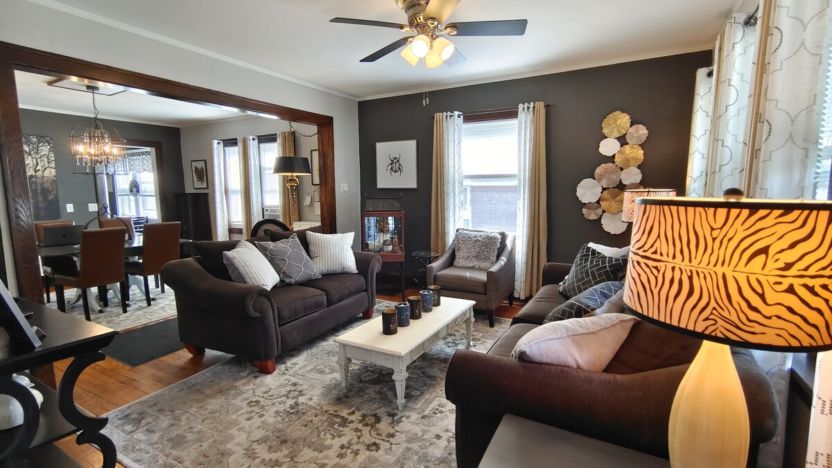 Welcome to our centrally located Rockford retreat! The lower unit is a two-bedroom, one-bathroom home that seamlessly blends 1920s vintage charm with modern luxury.
