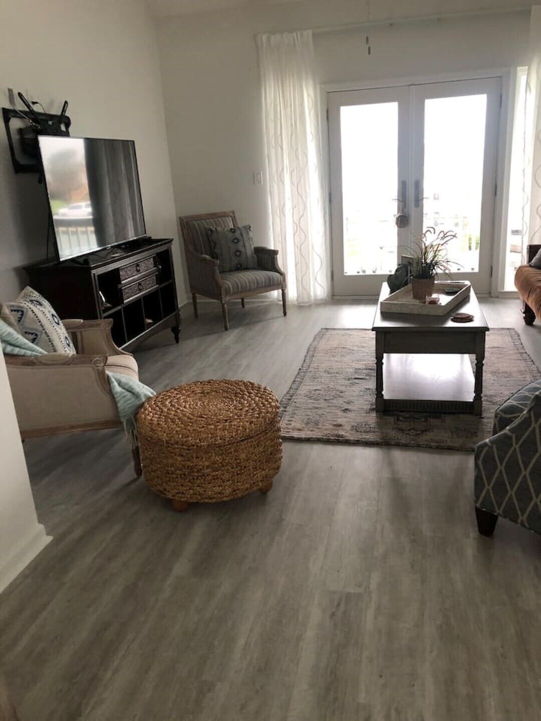 INDOOR LIVING: Smart TV w/ cable, wardrobe, TV trays