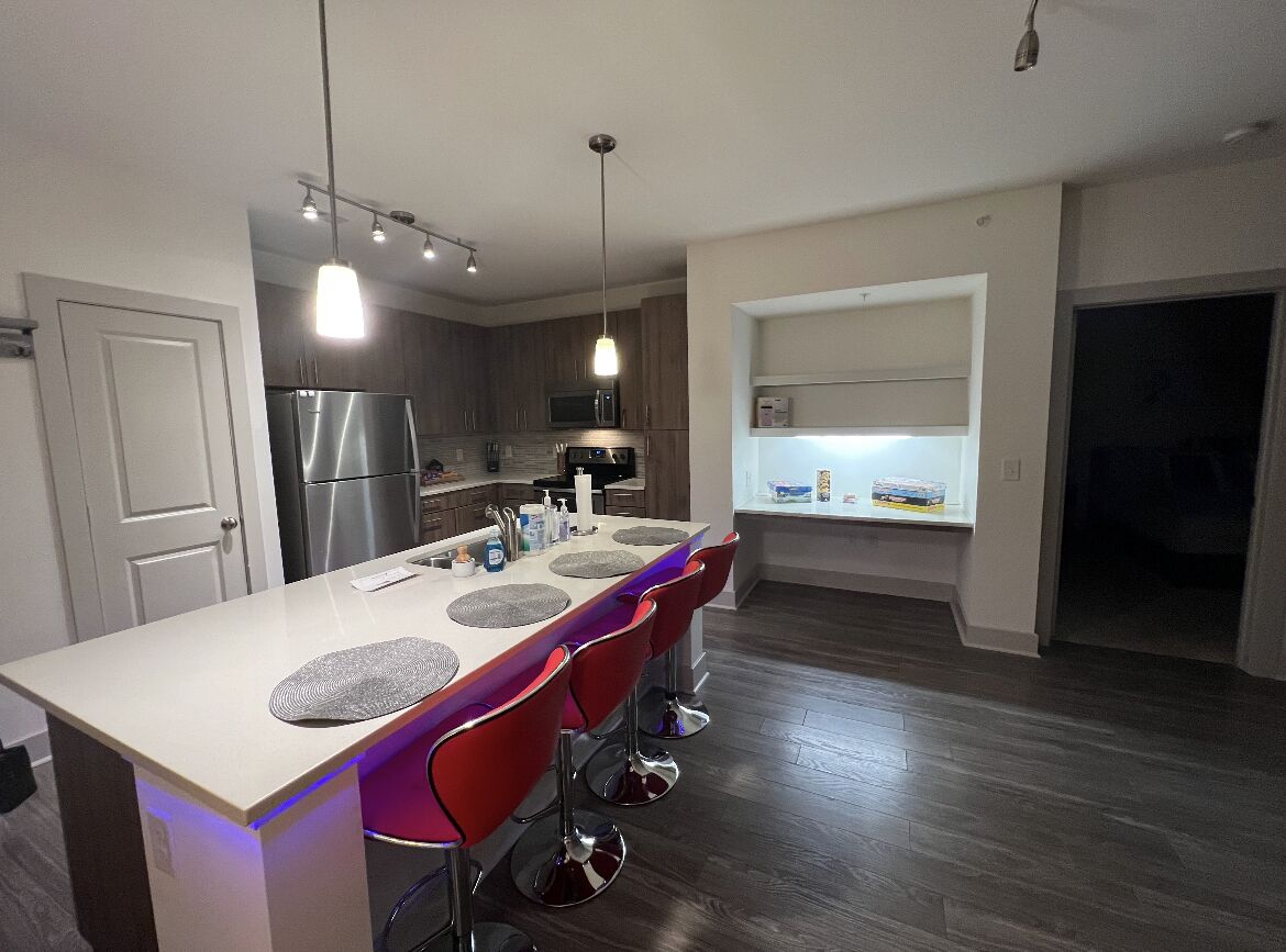 One bed / one bath apartment, full kitchen access, smart TV, dedicated work space
