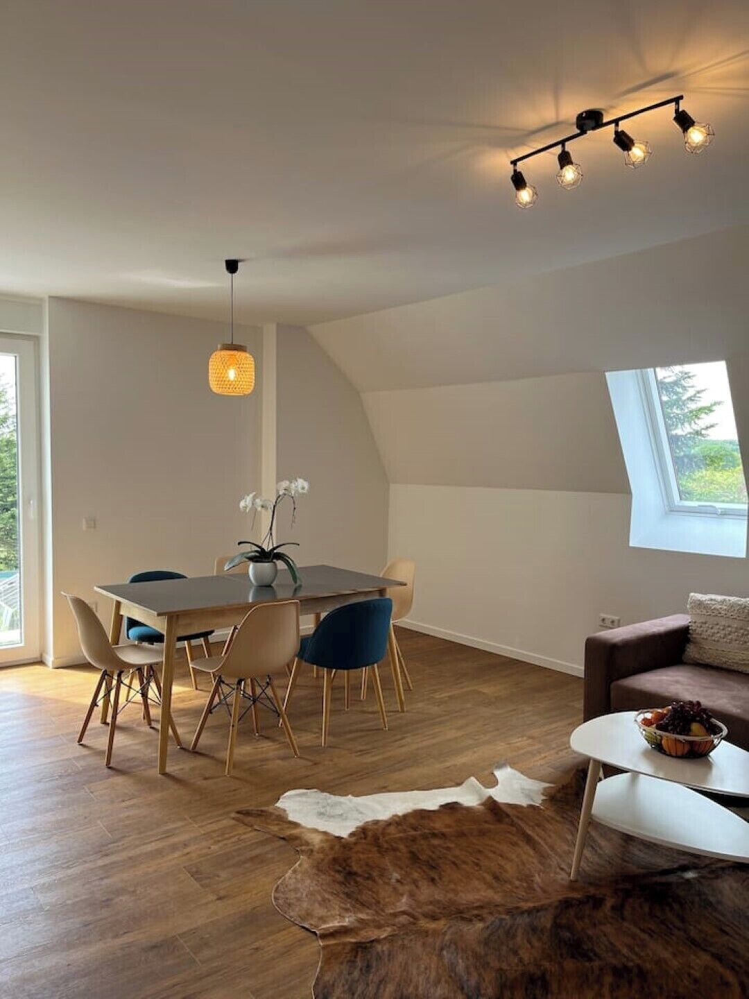 The appartment is located in our new modern house on it‘s highest floor. You can enter your penthouse from a generous glass corridor, from where the starecase will lead you to the second floor where you can enter the penthouse. Once your enter the penthouse there is a large living room awaiting you, with a sofa which can be opened to be a sofa bed.