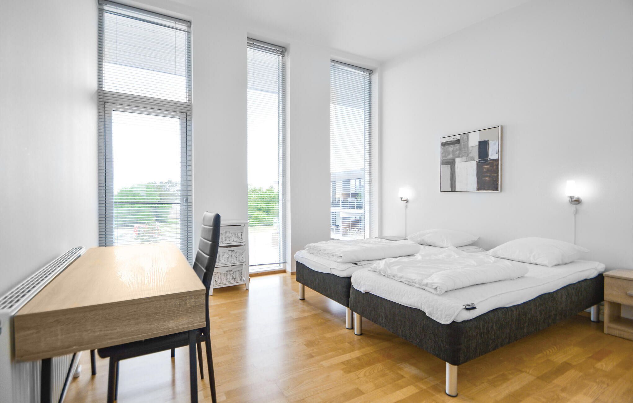 A holiday apartment on the 1st floor at Rim Holiday Centre with many activities like indoor and outdoor swimming pools (free entry) and sauna. The kitchen is in open connection with the dining and living room. The single beds can be used as a double bed. No letting to youth groups.A refundable deposit might be charged closer to your check-in date. Thesecuritydepositensuresasmoothstayandcoversany additionalservicesorconsumptioncharges.Thisdepositcoversutilitiesconsumedduringyourstay andanyadditionalservicesthatmaybetaken.Thefinalamountwillbeadjustedbasedonactualmeter readings,actualusageofextraservices,andanyremaining balancewillberefundedwithin21daysaftercheckout.Thisdepositsimplyactsasaprepaymentforchargesthat youwouldanywayspayfor,ensuringaseamlessstayand check-outexperience.