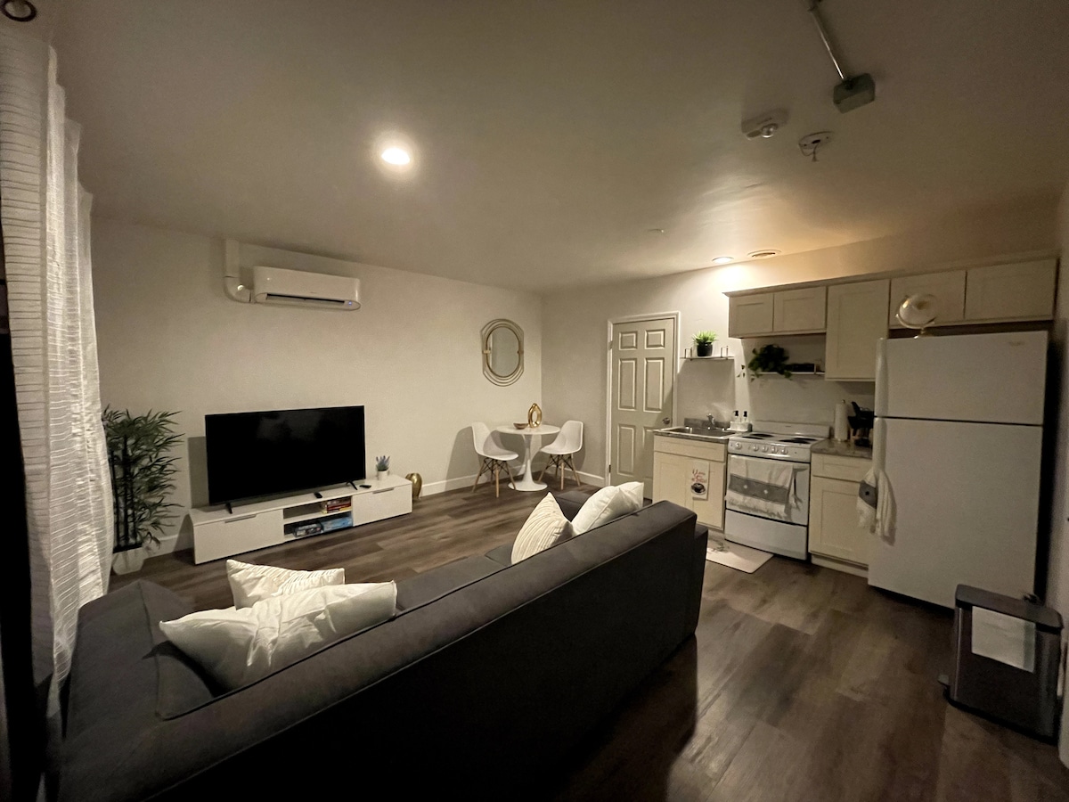Welcome to the Golden Roseville Luxe Retreat! This guesthouse boasts high ceilings and luxurious finishes, from Calacatta quartz countertops to a stunning floor-to-ceiling tiled bathroom with glass accents. The space is fully equipped with all kitchen essentials, coffee, tea, a washer/dryer, fast Wi-Fi, and a dedicated workstation. Thoughtfully designed for comfort and convenience, it's the perfect blend of elegance and practicality for a relaxing stay!