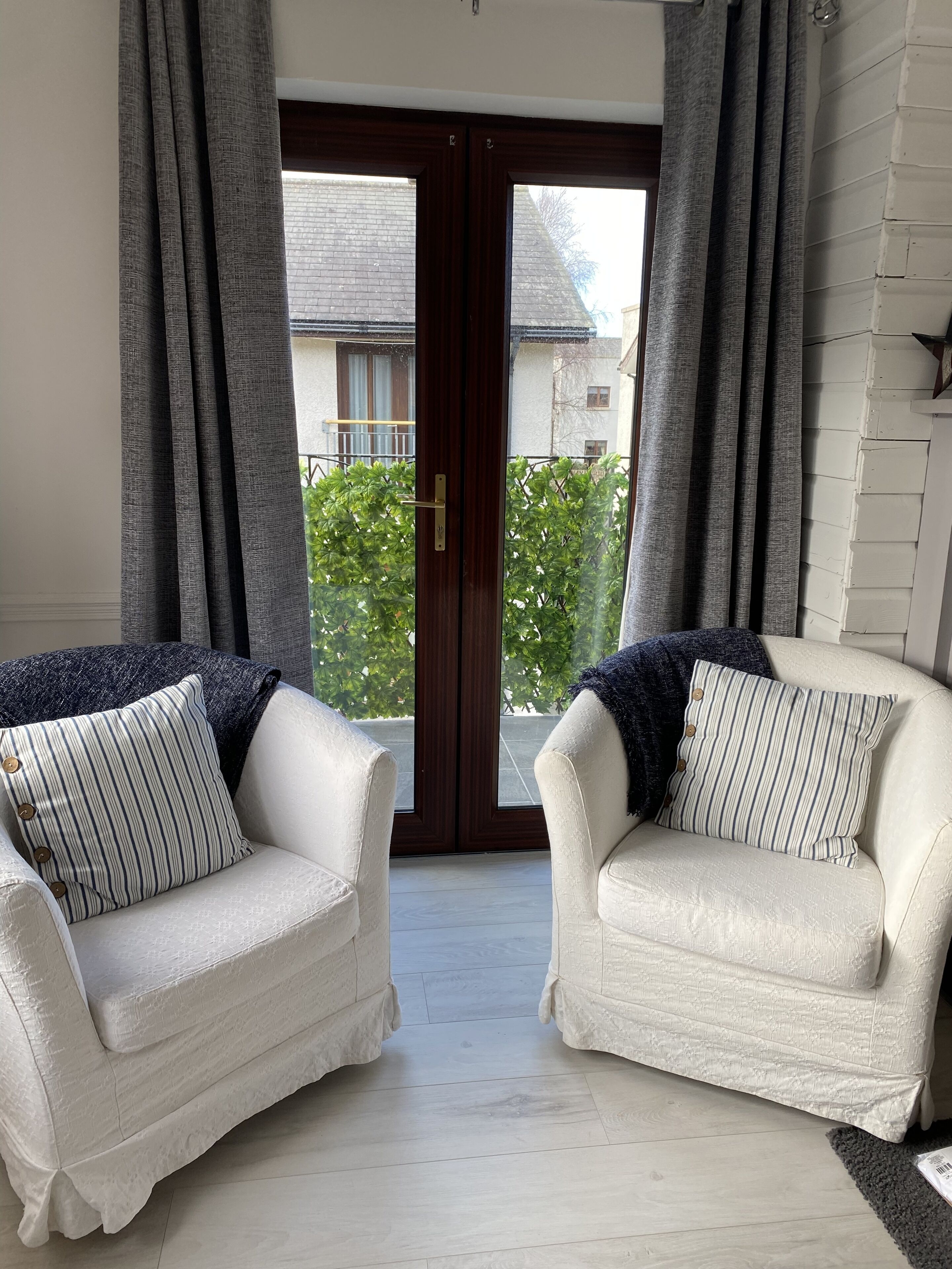 Living room and kitchen are open plan shared space with views of the Cooley mountains. A great spot for your morning cuppa!