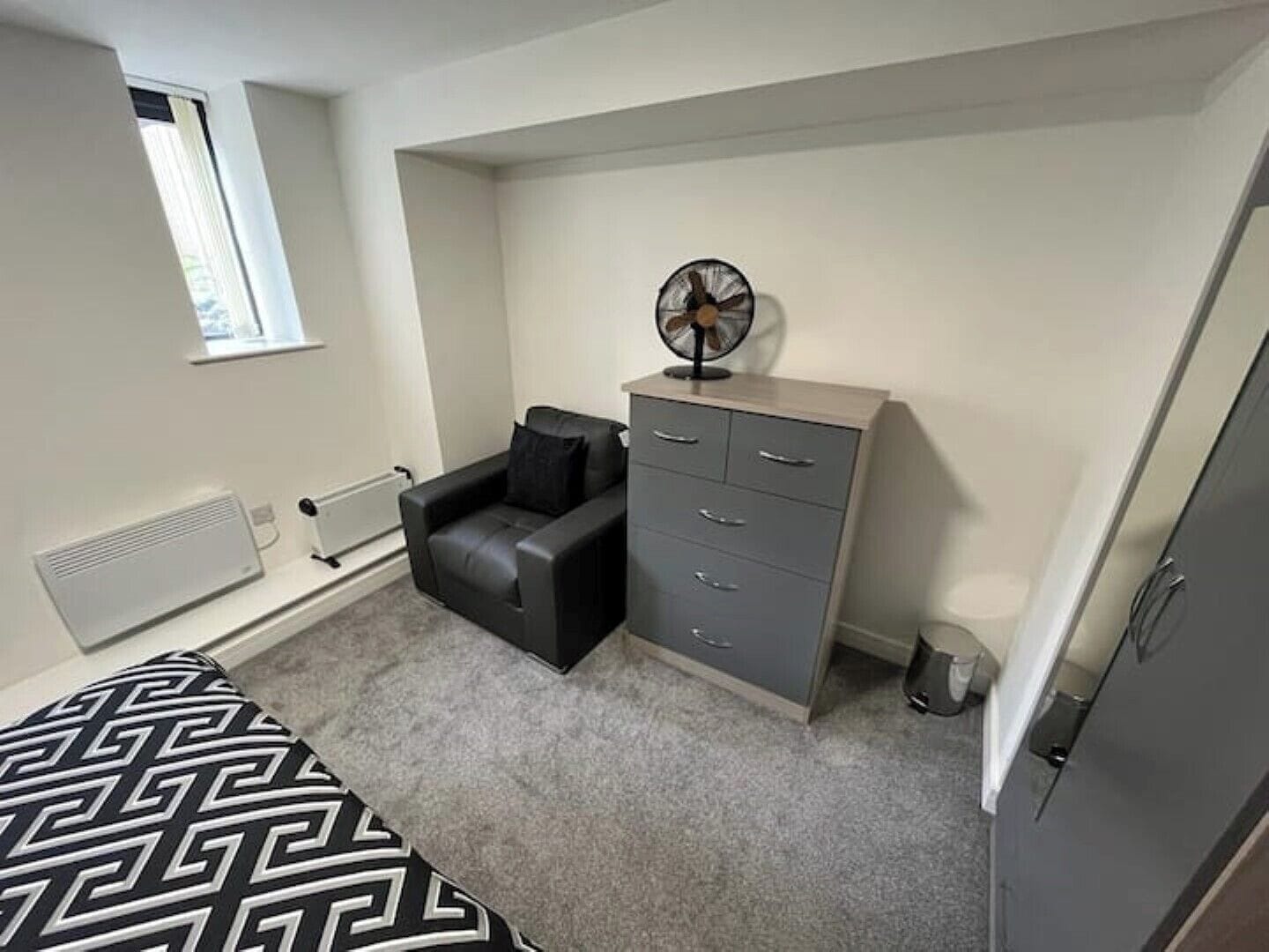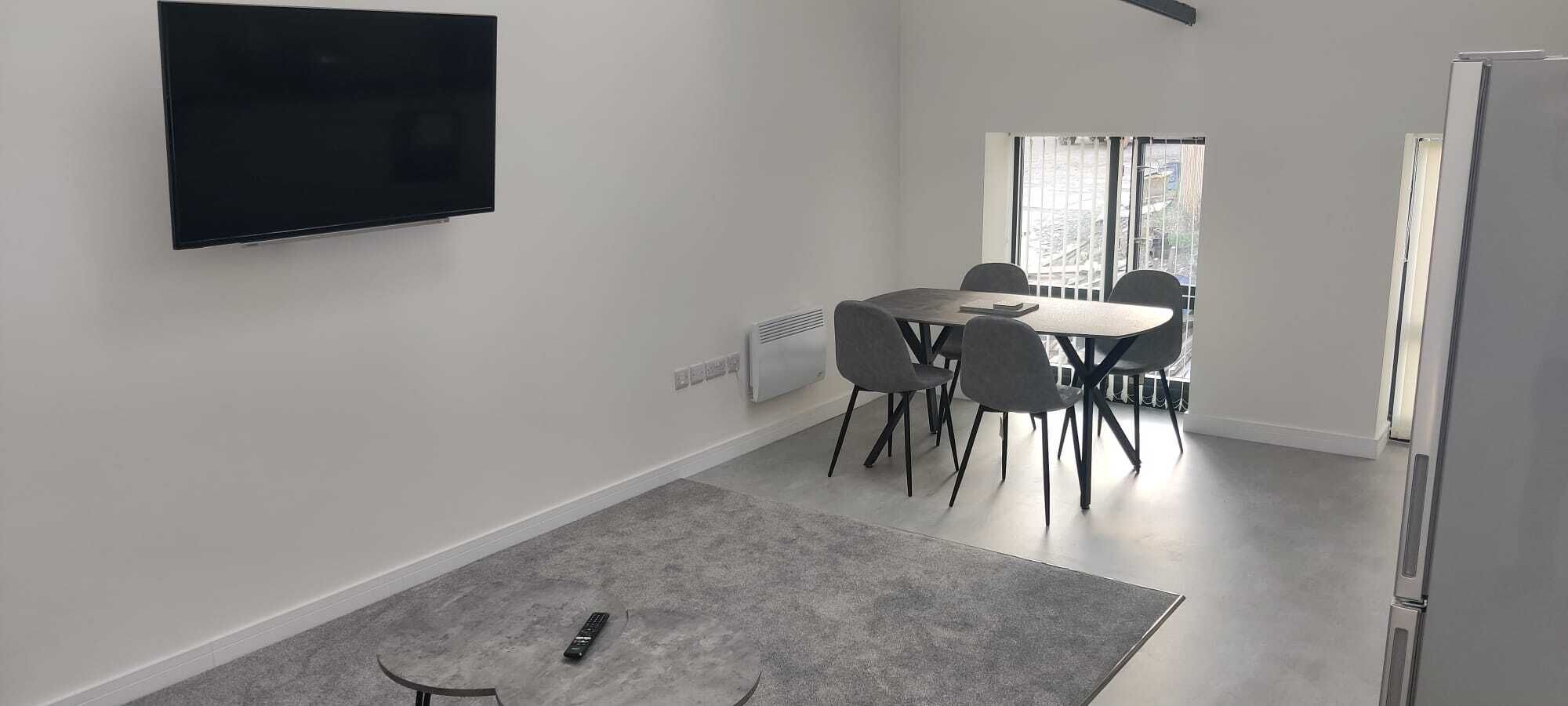 This modern and cosy studio apartment is situated within a contemporary development in central Rotherham. Featuring a stylish interior with modern furnishings, fixtures, and fittings, it comfortably accommodates up to 4 guests (with use of sofa bed). The studio will be exclusively yours throughout your stay and is equipped with all the amenities needed for a pleasant and homely stay. Please note, any concerns previously mentioned about the heaters have now been fully resolved.