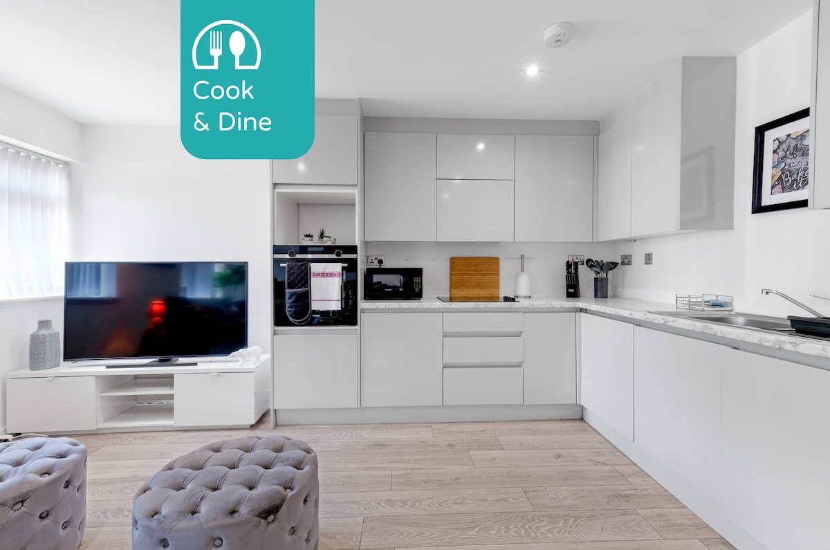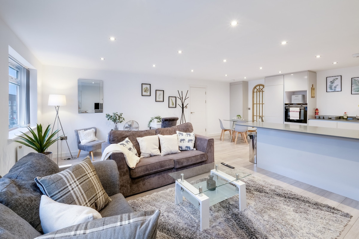 Kick back, and relax, in this new stylish 1-bed apartment flat. Consisting of a bedroom with a King Size bed, 1 shower room, and a large open plan kitchen living area. There are no shared areas, this is for full access.