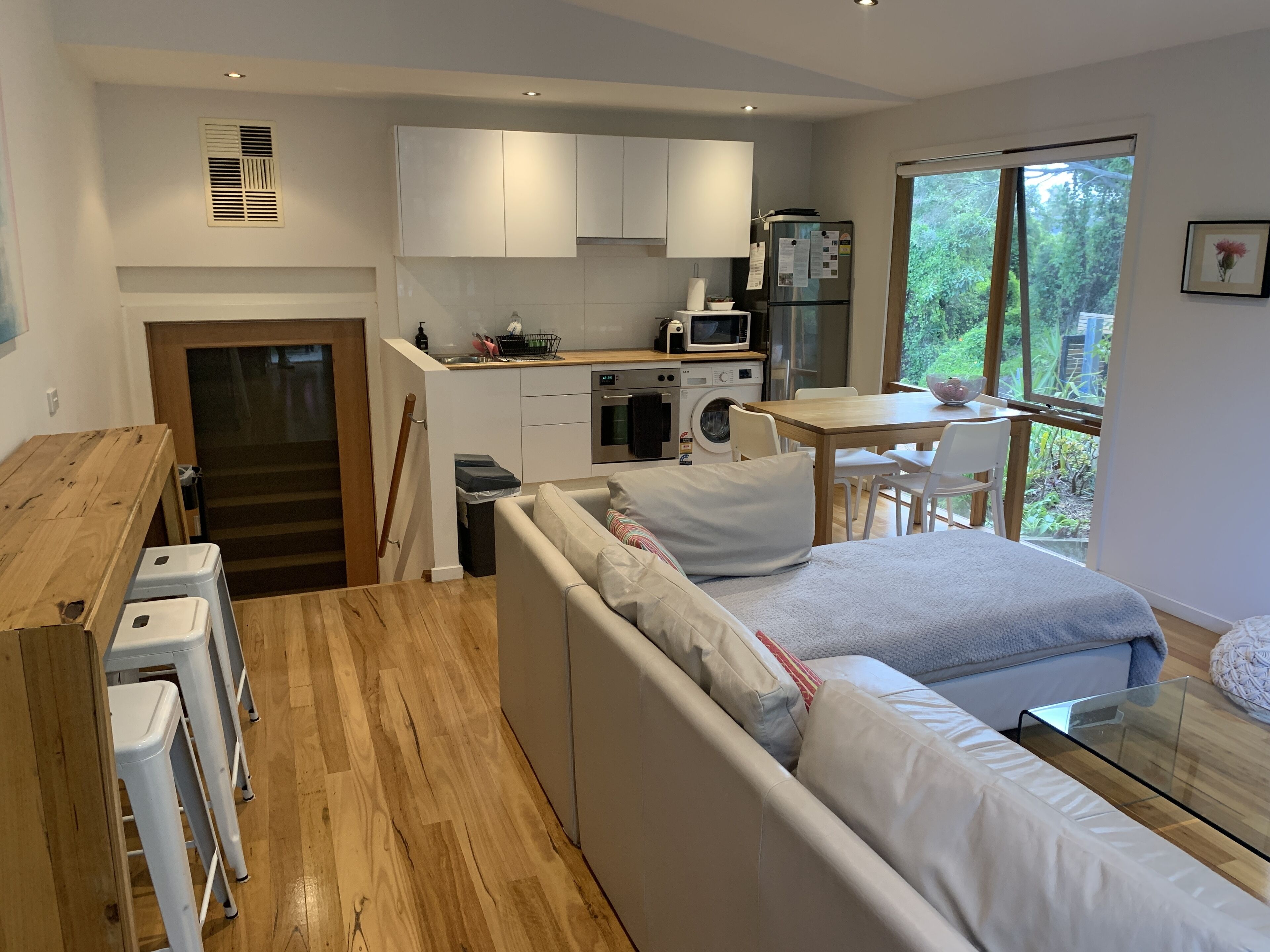 You'll enjoy the entire apartment with private parking and easy access. It's quiet and filled to the brim with creature comforts. Best of all, the beach is directly across the road. The stairwell is shared with our neighbours (rest assured they're super friendly). The apartment itself is open plan, the bathroom is large, and the bedrooms are spacious.