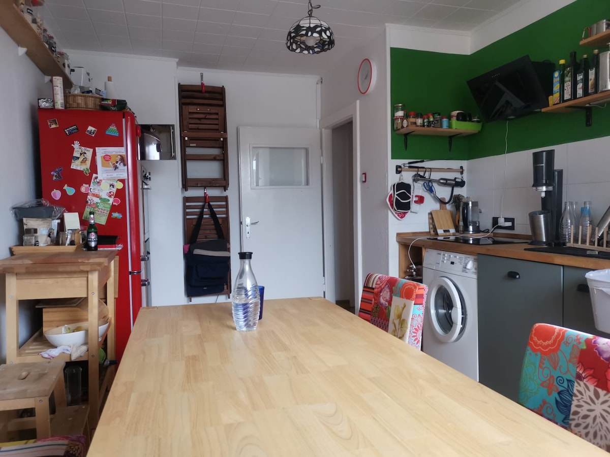 A quiet, large bedroom (about 20 square meters) is offered in the heart of Saarbrücken. Meals can be prepared in the kitchen, which can also be used as a common room. The WiFi can of course be used.