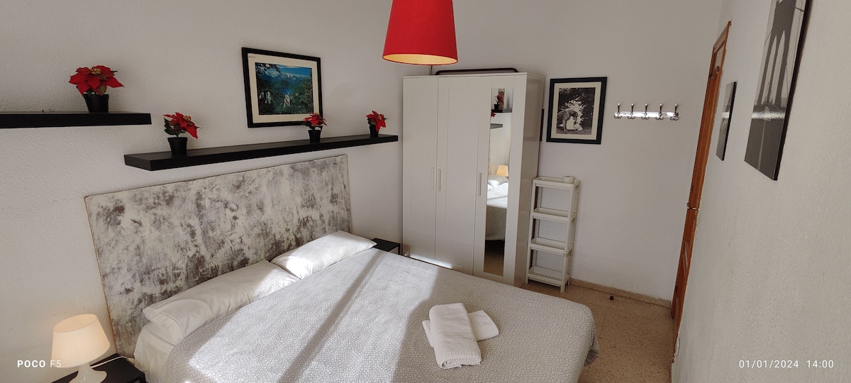 3 bedroom apartment completely exterior with a large terrace. It consists of a main room with double bed, TV, air conditioning and heating. With access to a very sunny balcony. Single room with 90 bed and heating. Room with 2 beds of 90 very sunny, air conditioning, heating and exit to a large terrace. Full bathroom with whirlpool corner bathtub for 2 people. Full dining room with sofa and TV 47´. Full kitchen with utensils, pans and pots to cook. Washer and dryer room with soap and softener. Also ironing board and corresponding iron. Large free parking area around the apartment. Restaurants and tapas bars near the apartment and large supermarket.
