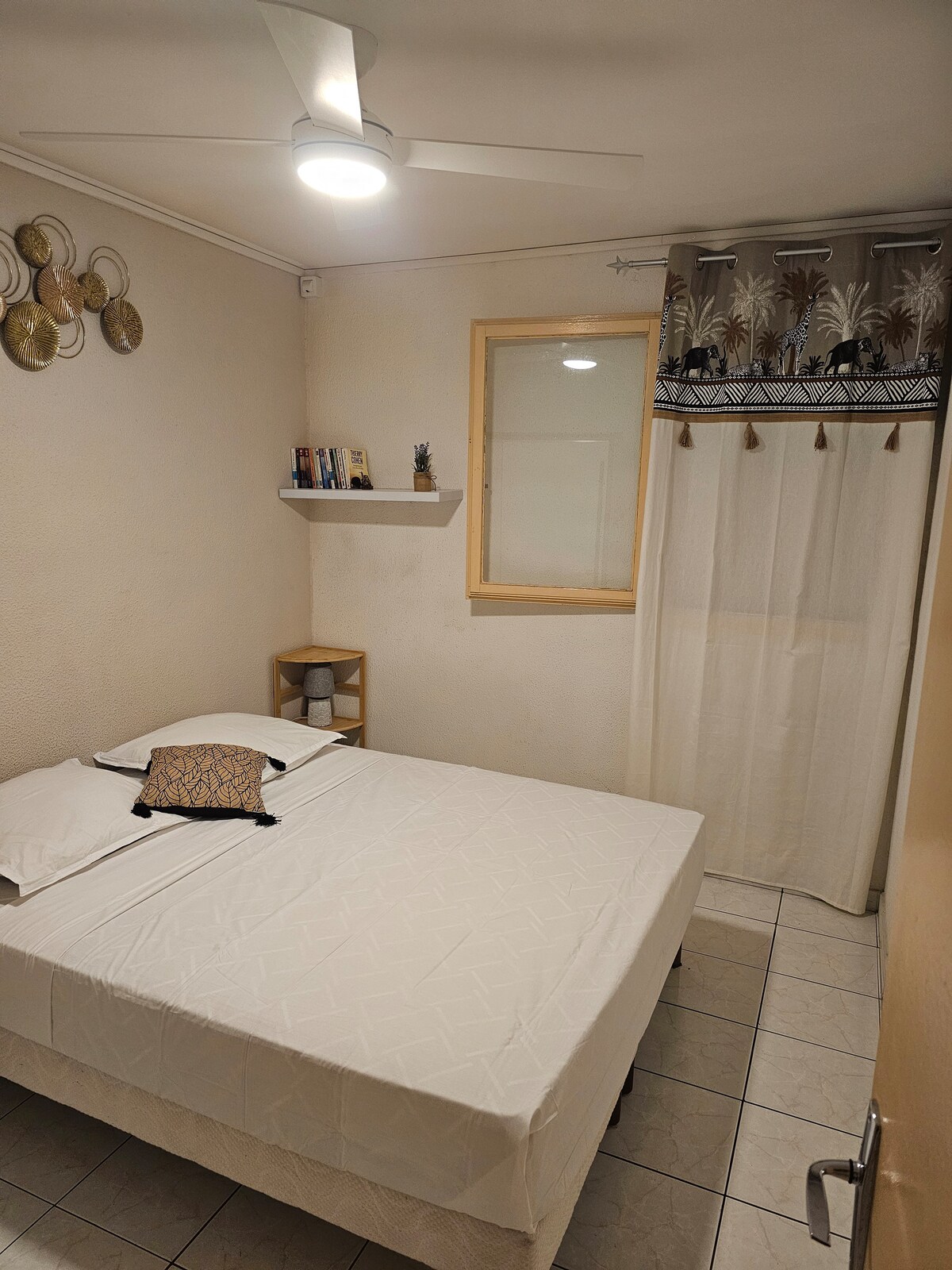 A Sainte Clotilde Moufia apt in a quiet cul-de-sac, air-conditioned,WiFi, kitchen area equipped to prepare meals, washing machine,hairdryer, satellite TV, Wi-Fi channel, linens, 5 minutes by car from the university, North high school, 10 minutes from the city center, shopping centers, airport, ideal for visiting the North and East. The beaches are 30 minutes away.