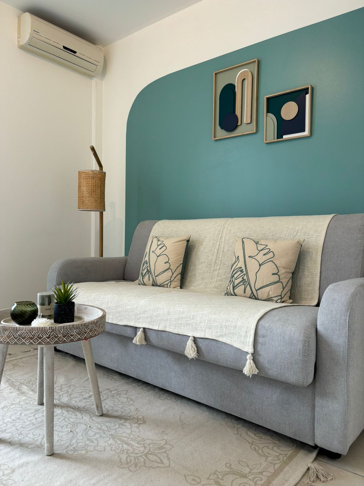 ✅ A beautiful air-conditioned living room equipped with a Smart TV, a comfortable double sofa bed, internet connection as well as a dining area. The living room has access to a balcony.