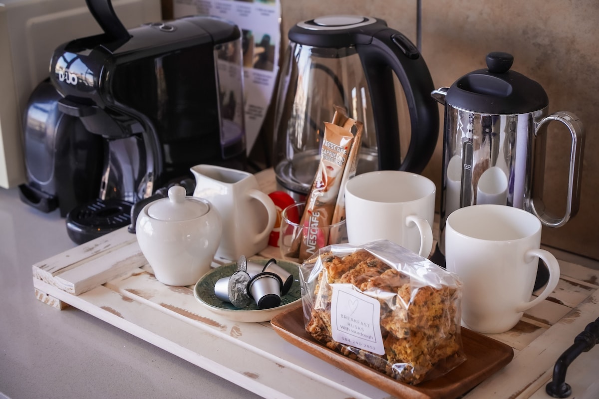 Indulge in a luxurious stay in this studio apartment with private en-suite bathroom and separate entrance. Kitchenette, with Nespresso coffee machine, fridge with mini freezer, induction plate, kettle and toaster with a dining table overlooking the river. There will be tea coffee sugar and milk for your arrival. Unwind in the cozy TV lounge, ideal for relaxation with Netflix, Showmax, Prime Video, Britbox, Disney and DSTV now.