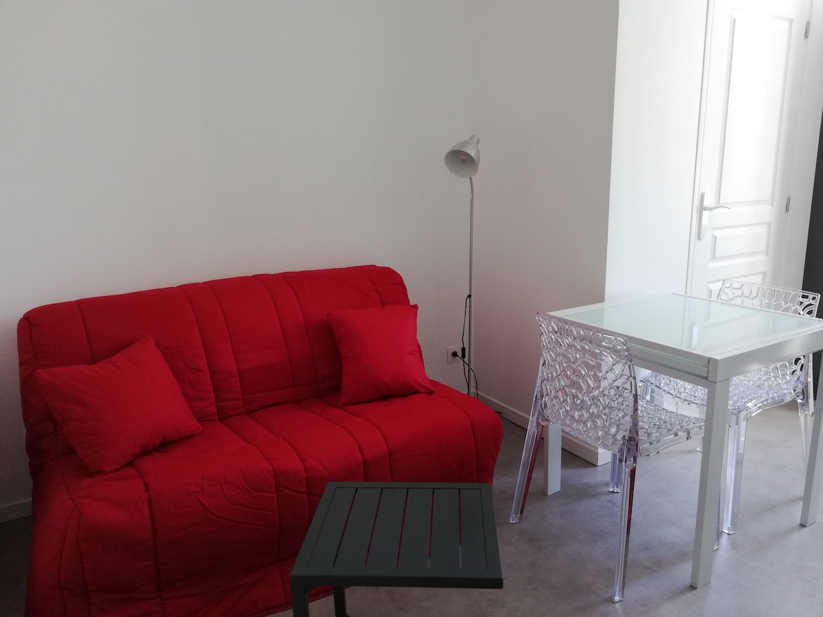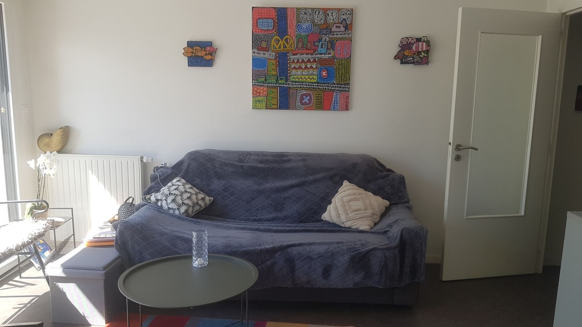 - A bright living room with a two-seater convertible sofa (good quality bedding 140 X 190),