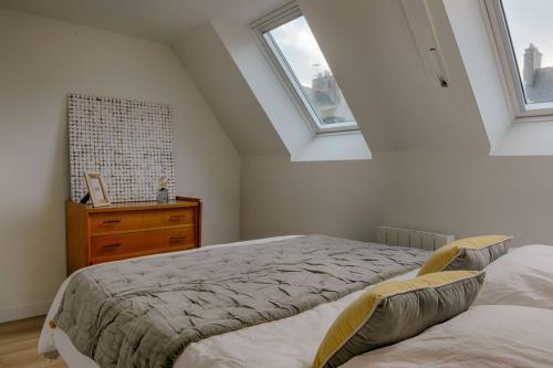 Situated 1.6 km from Sillon Beach, 2 km from Rochebonne Beach and 2.7 km from Minihic Beach, Appartement Confortable proche de la Gare a Saint Malo features accommodation set in Saint Malo. This property offers access to a balcony, free private parking and free WiFi. The apartment has 3 bedrooms, a flat-screen TV, an equipped kitchen with a dishwasher and a microwave, a washing machine, and 1 bathroom with a shower. Towels and bed linen are available. Palais du Grand Large is 2.4 km from the apartment, while Casino Barrière Saint-Malo is 2.5 km from the property. The nearest airport is Rennes–Saint-Jacques Airport, 75 km from Appartement Confortable proche de la Gare a Saint Malo.