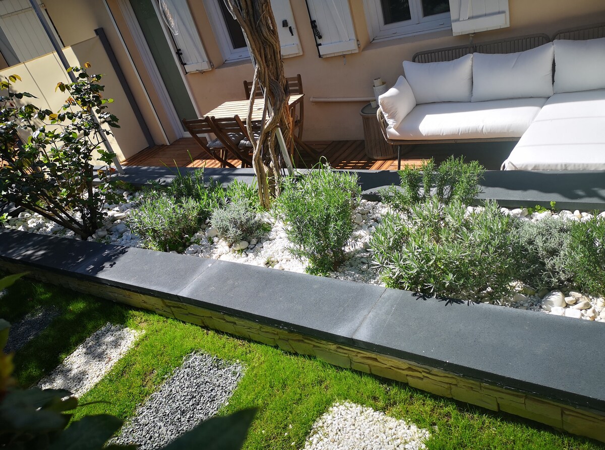 This studio is perfect for couples, small but very pleasant thanks to its sunny terrace overlooking a large natural garden. Ideally located between the city center and the beaches, you can leave your car and walk down to Place des Lices or Graniers beach in 10 minutes.