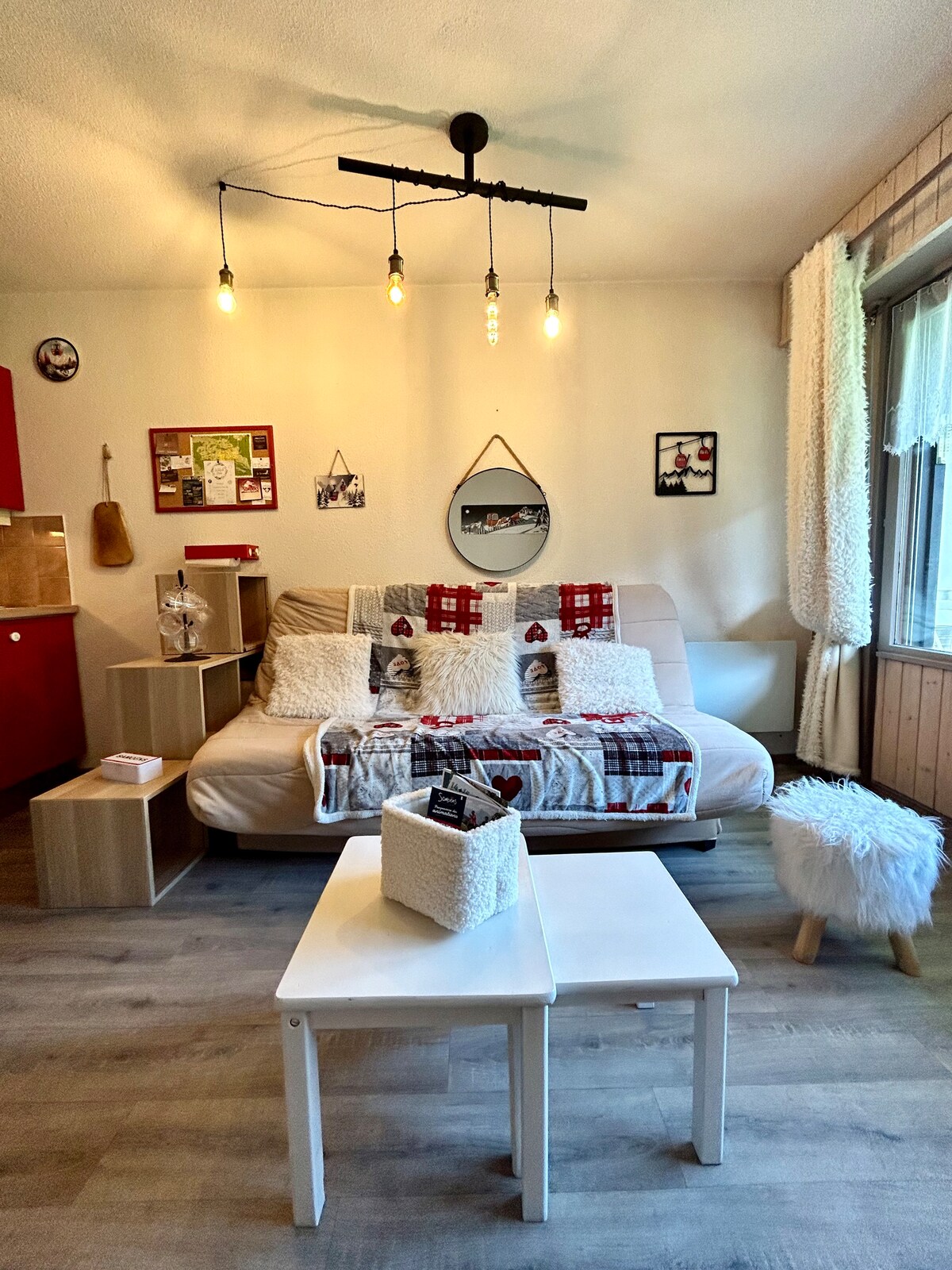 Located in the heart of Samoëns, this beautiful 39m2 apartment can comfortably accommodate up to 6 people. It has a spacious living room (with a sofa bed) open on a fully equipped kitchen, two bedrooms, a bathroom with bathtub, a separate toilet, a private underground parking space and a large ski locker. The free ski bus is located at 50m. A mini-market is located in the same residence and all the shops are a few minutes walking distance.