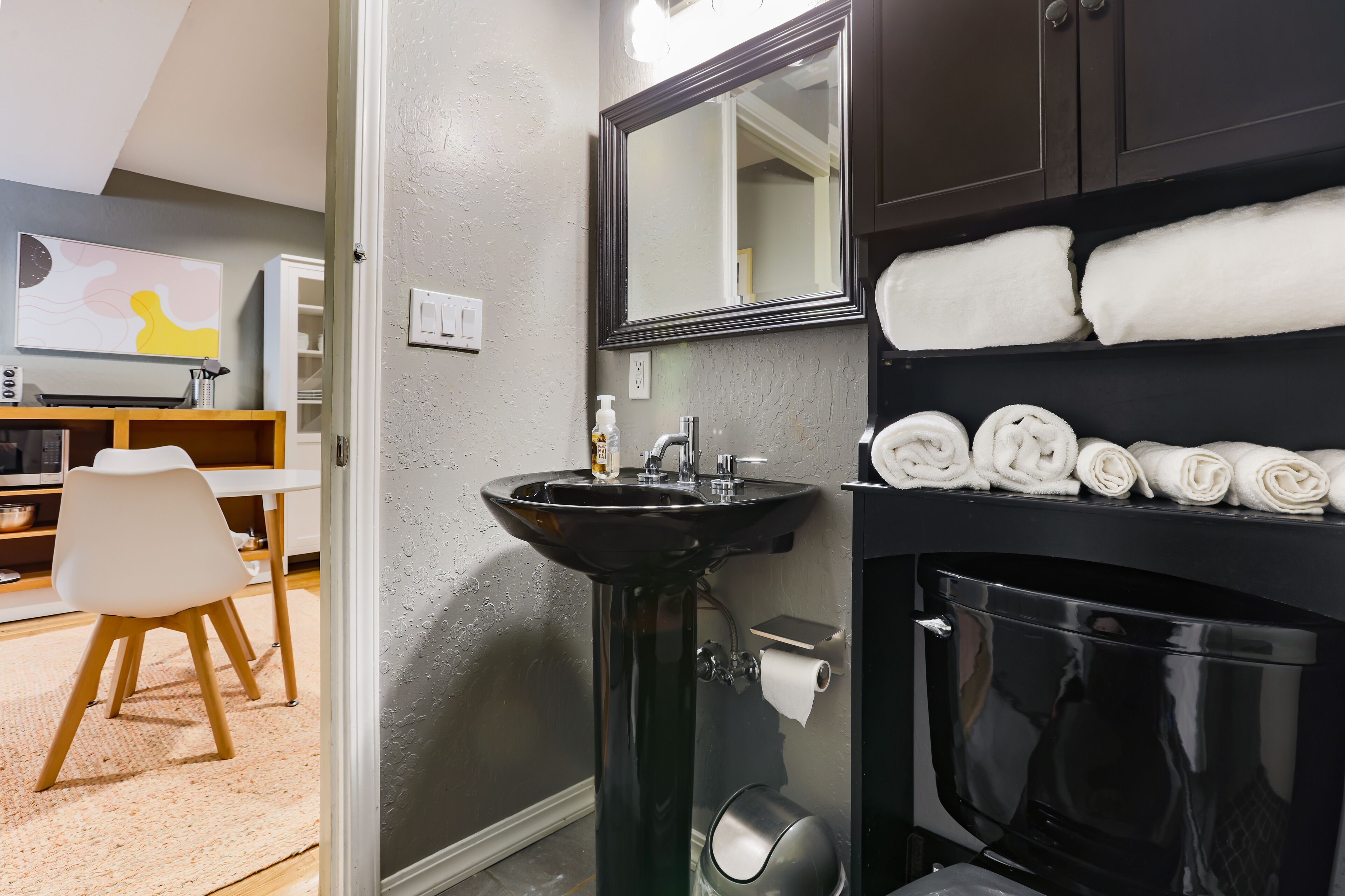Check-in is easy with a lockbox. On the day of your arrival, you’ll receive a code to access the box. To enter the studio, use the main clear door and proceed to the first door on your right before the stairs. Please note, the upstairs is privately occupied by the owner, and is not accessible to guests. Enjoy your stay in your private studio!
