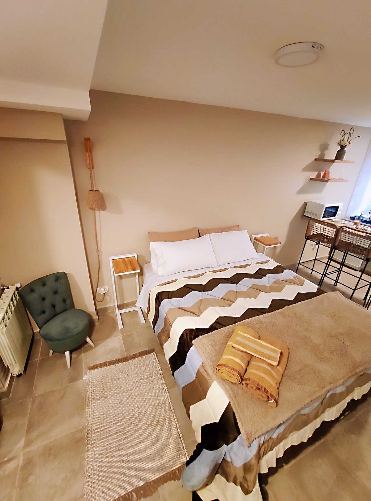 Monoambiente 24m2 Bo Belgrano. Fabulous lake view! 10 min walk to Centro Civico Small separate kitchen. Bed 2pce. Small oval table. Placard. Fridge c/freezer, gas stove 4 stove and oven, microwave. Electric Pava Mirror Whole Body. I invite you to read reviews of my other spaces 😀