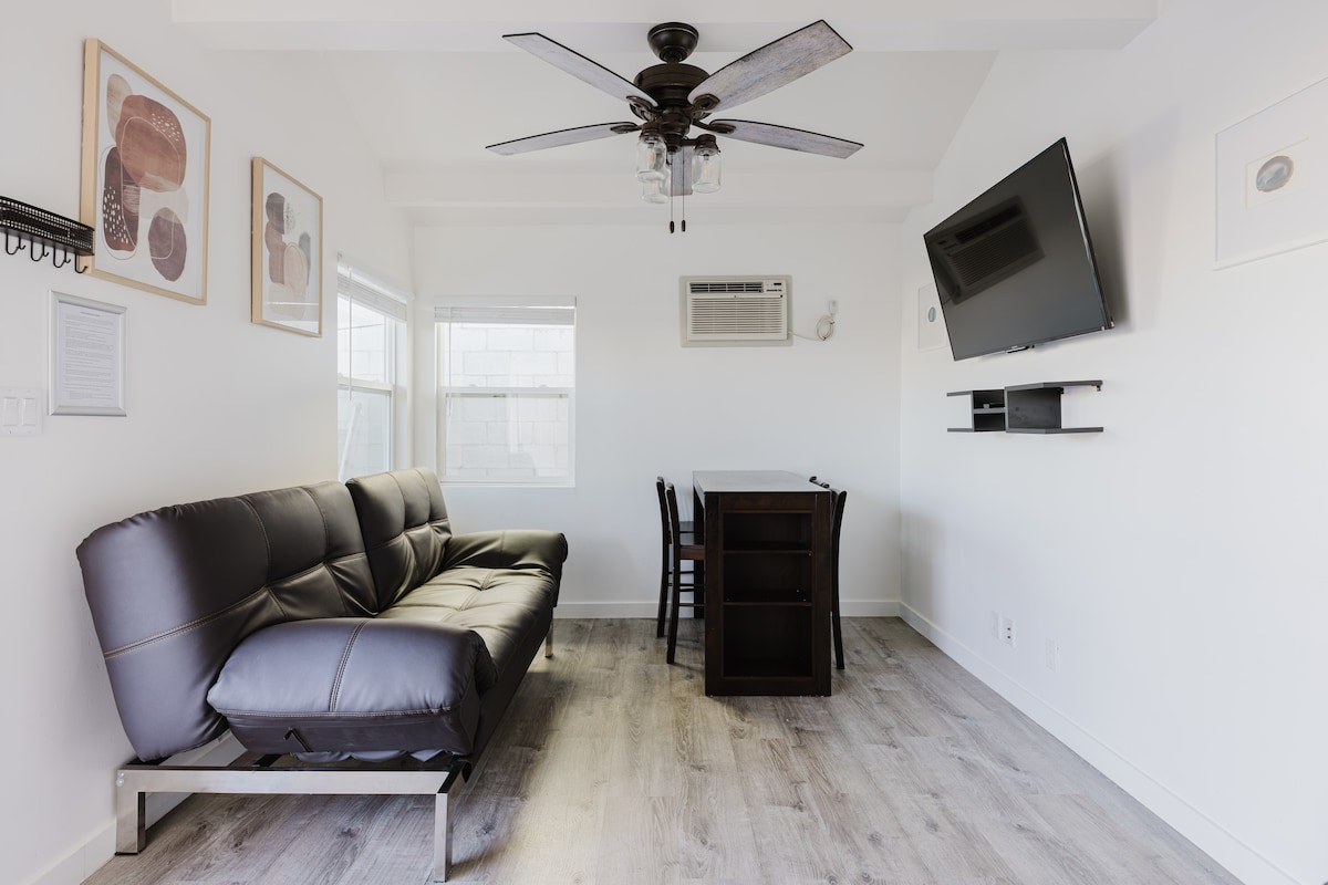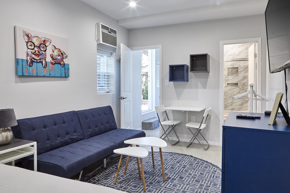 This charming space features a comfortable queen-sized bed and a sofa bed, offering flexibility for up to 4 guests. Whether you're visiting for business, vacation, or a weekend getaway, you'll find everything you need to relax and unwind. The apartment is fully equipped with modern amenities including high-speed Wi-Fi, a flat-screen TV, and air conditioning to keep you cool on warm LA days.