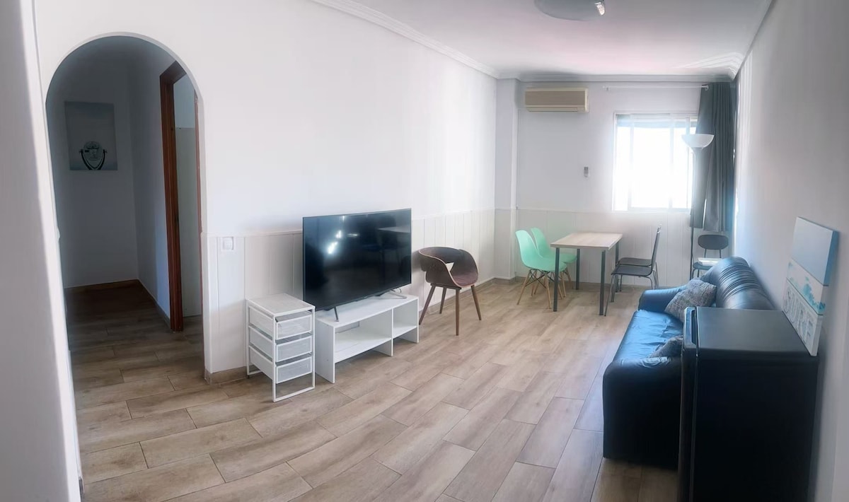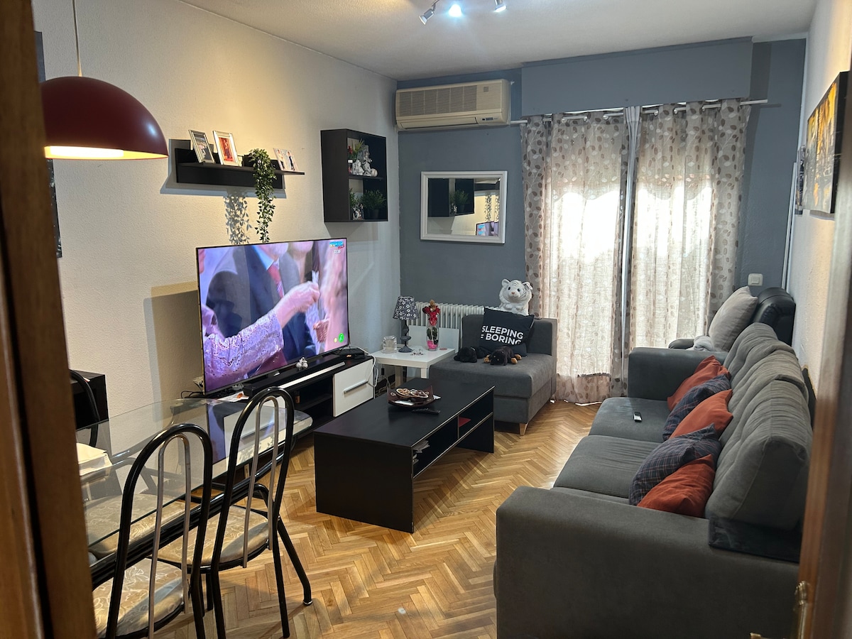 The living room is the perfect spot to relax after a day of work or study in Madrid, complete with a Smart TV for enjoying a good movie.