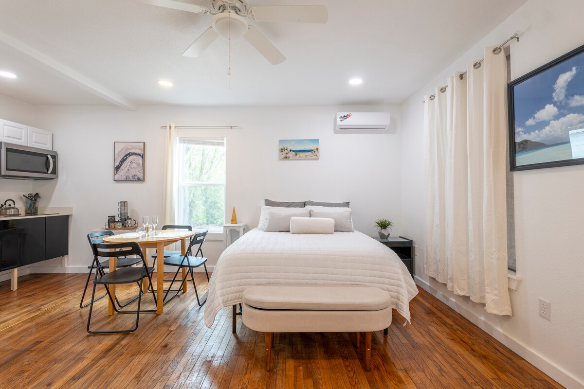 This spacious one-bedroom, 1.5-bathroom retreat is ideal for couples or solo travelers looking to explore all that San Marcos has to offer. The townhome features a cozy living area, a fully equipped kitchen for your culinary adventures, and a comfortable bedroom with a plush king-size bed.