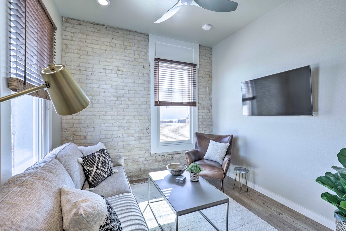 Modern comfort meets trendy digs at this 2-bedroom, 2-bathroom San Marcos vacation rental. Centrally located and across the street from the historic courthouse, this modern 2nd-floor apartment features an open living space, queen-sized beds, 3 Smart TVs, and a fully equipped kitchenette. Experience the famous shopping at San Marcos Premium Outlets, stroll along Purgatory Creek for some fresh air, or tease your tastebuds at any number of locally-owned restaurants, just a short walk away.