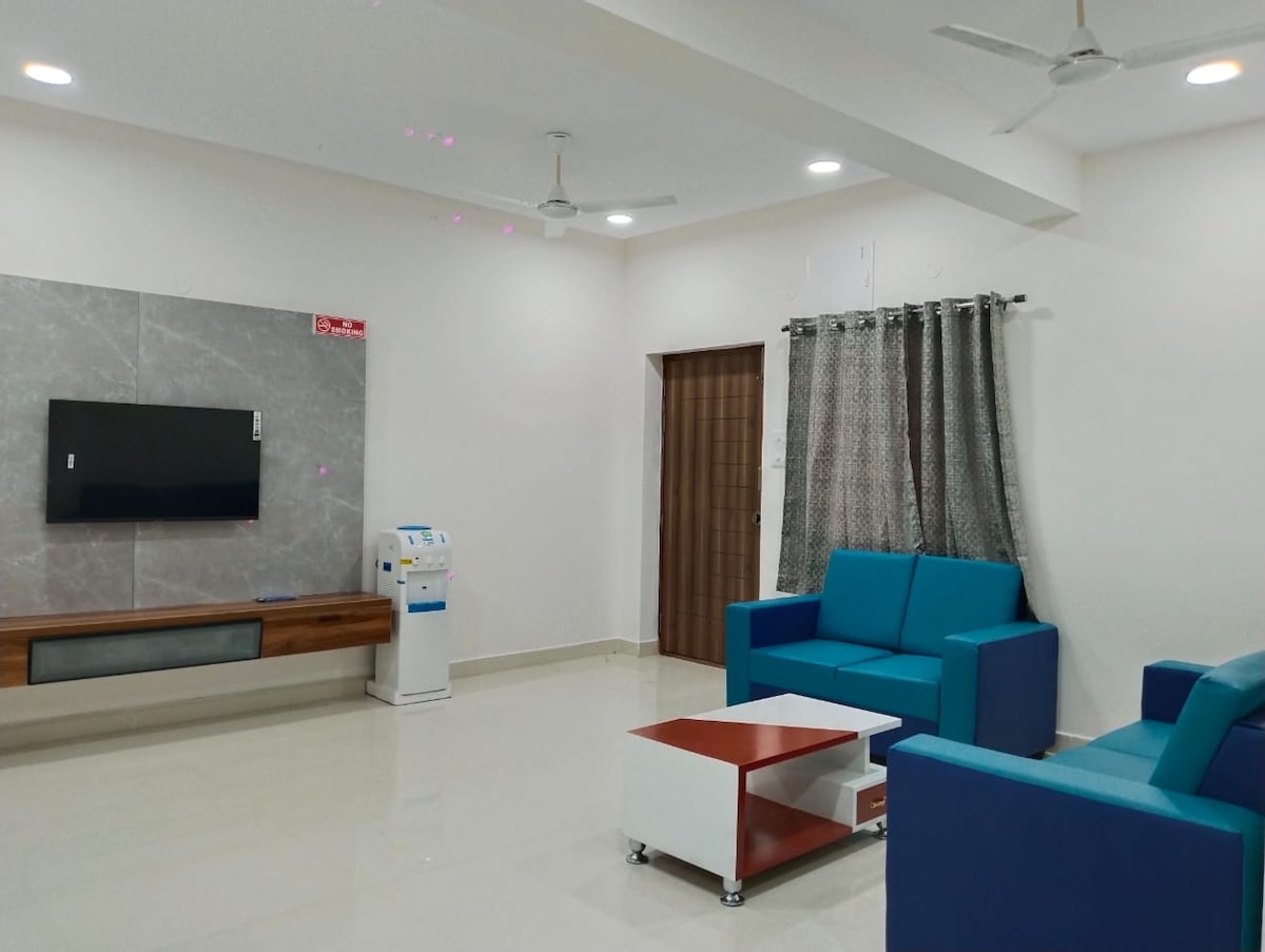 Welcome to our cozy 2 bedroom apartment located in the bustling area of Miyapur. As soon as you step inside, you'll be greeted by a bright and airy space that is perfect for a solo traveler or a couple seeking a comfortable stay.