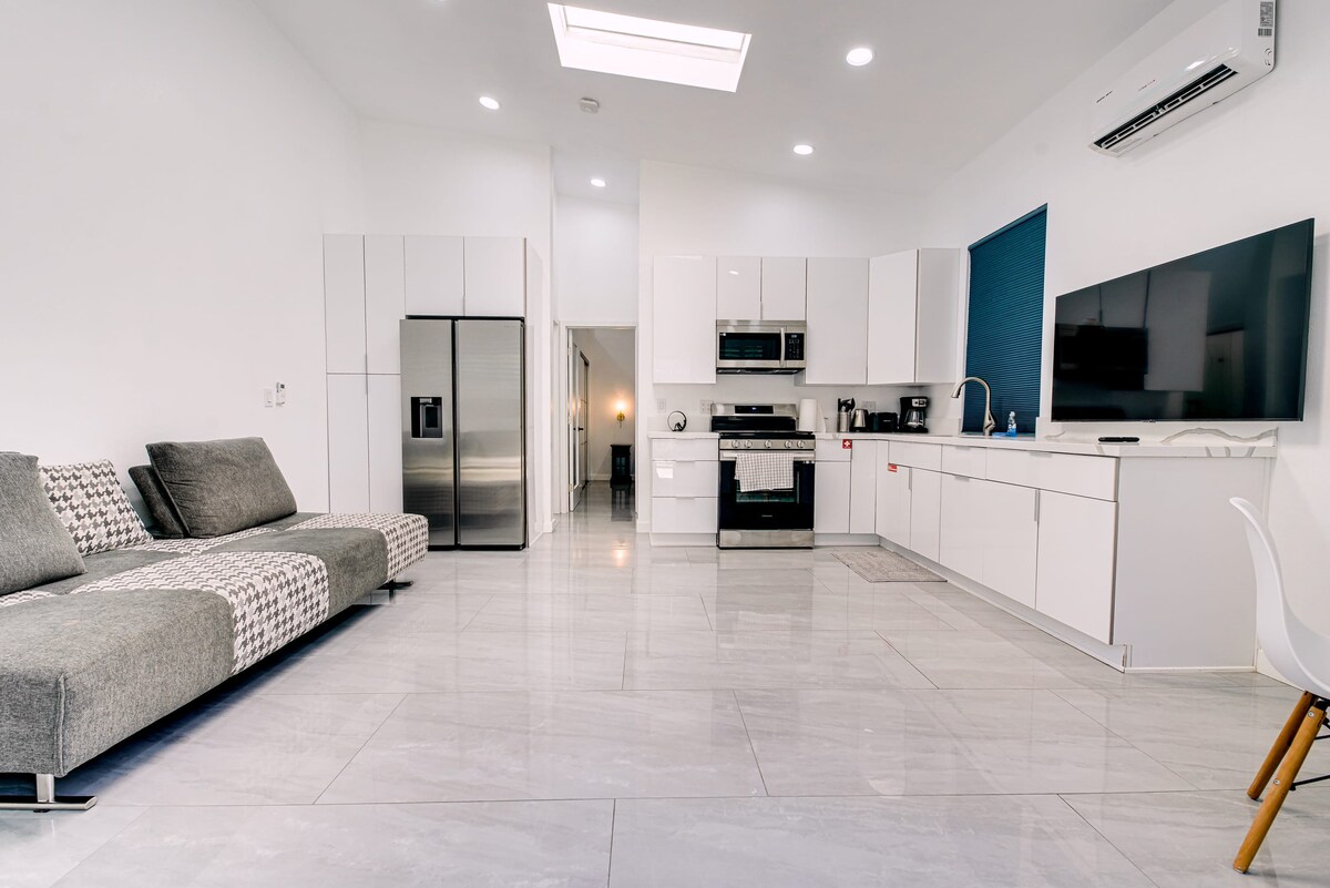 Welcome to our bright 1BR, 1BA haven with skylights. Enjoy AC, furnished interiors, near Disneyland, beaches, attractions—an ideal mix of comfort and leisure.
