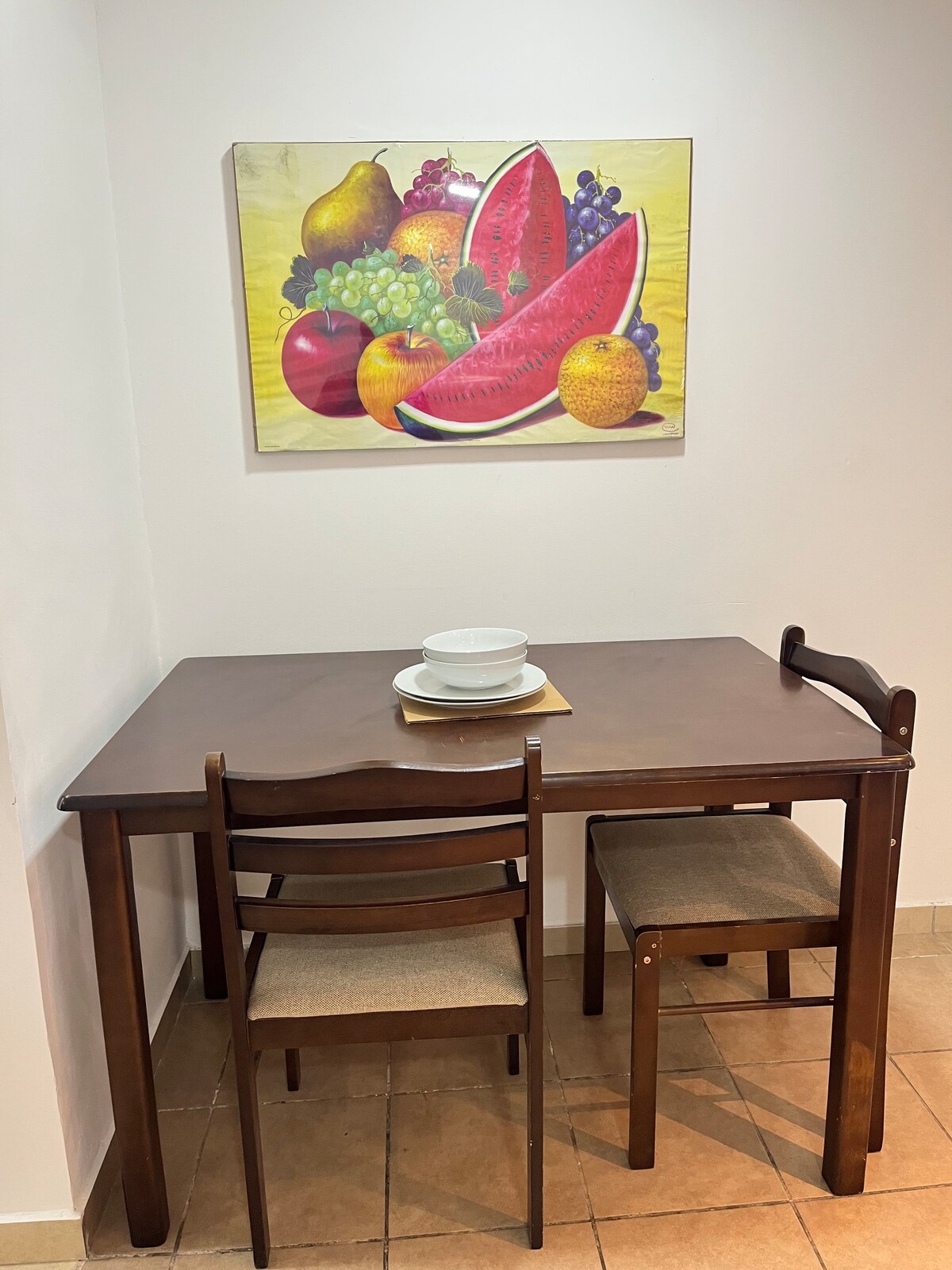 The apartment comes with everything you need to have a comfortable and special stay. An inflatable Queen bed for the family is offered.