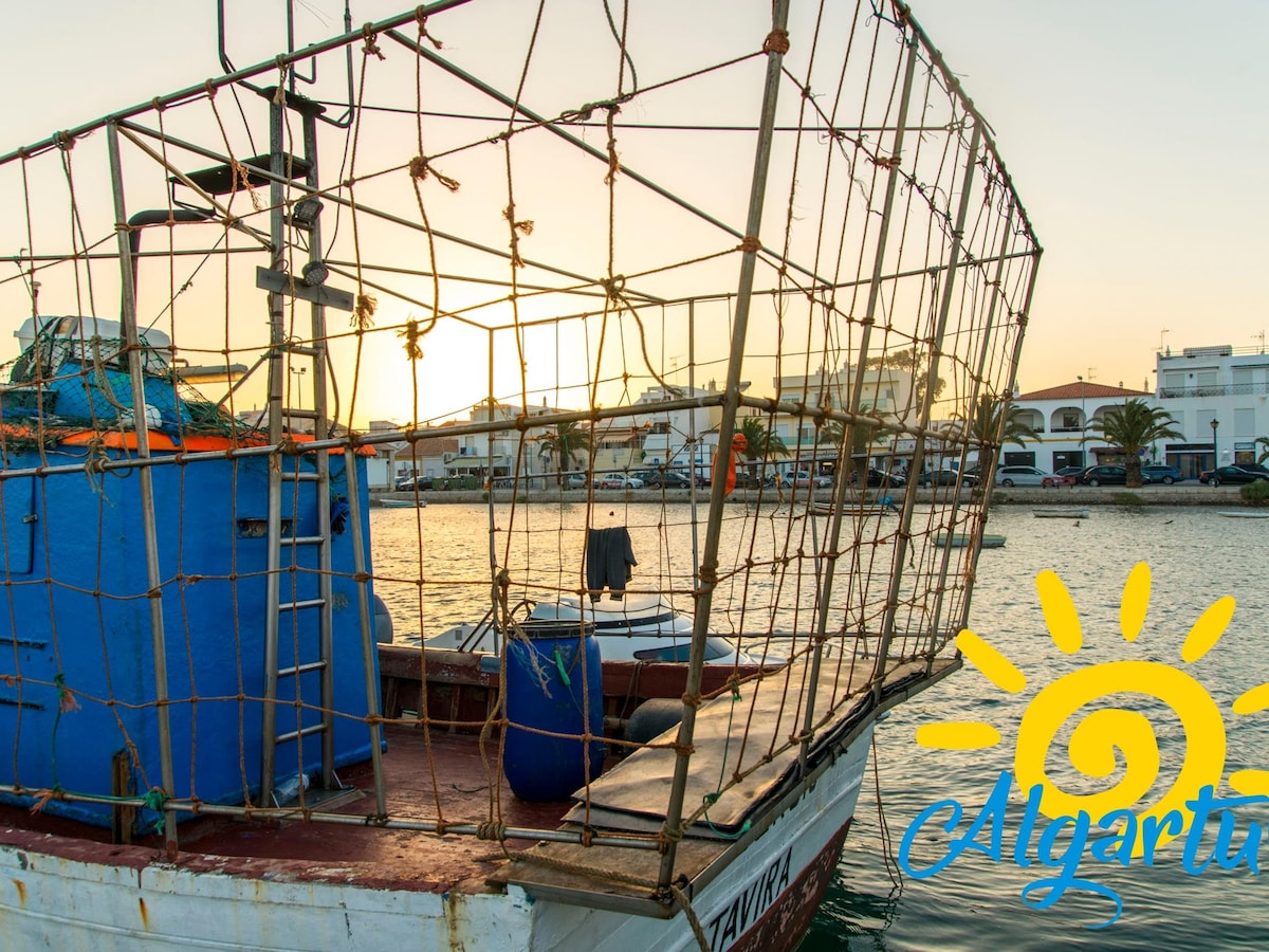 Ria Formosa's 2 bedroom apartment with 2 balconies, one of those with sea view, in the octopus capital, Santa Luzia, Tavira. Many beaches in the area, wich 3 of them around the village (Terra Estreita, Barril and Tavira Island). The apartment is about 5 minutes from Tavira, 10 from the highway, 25 from the airport.
